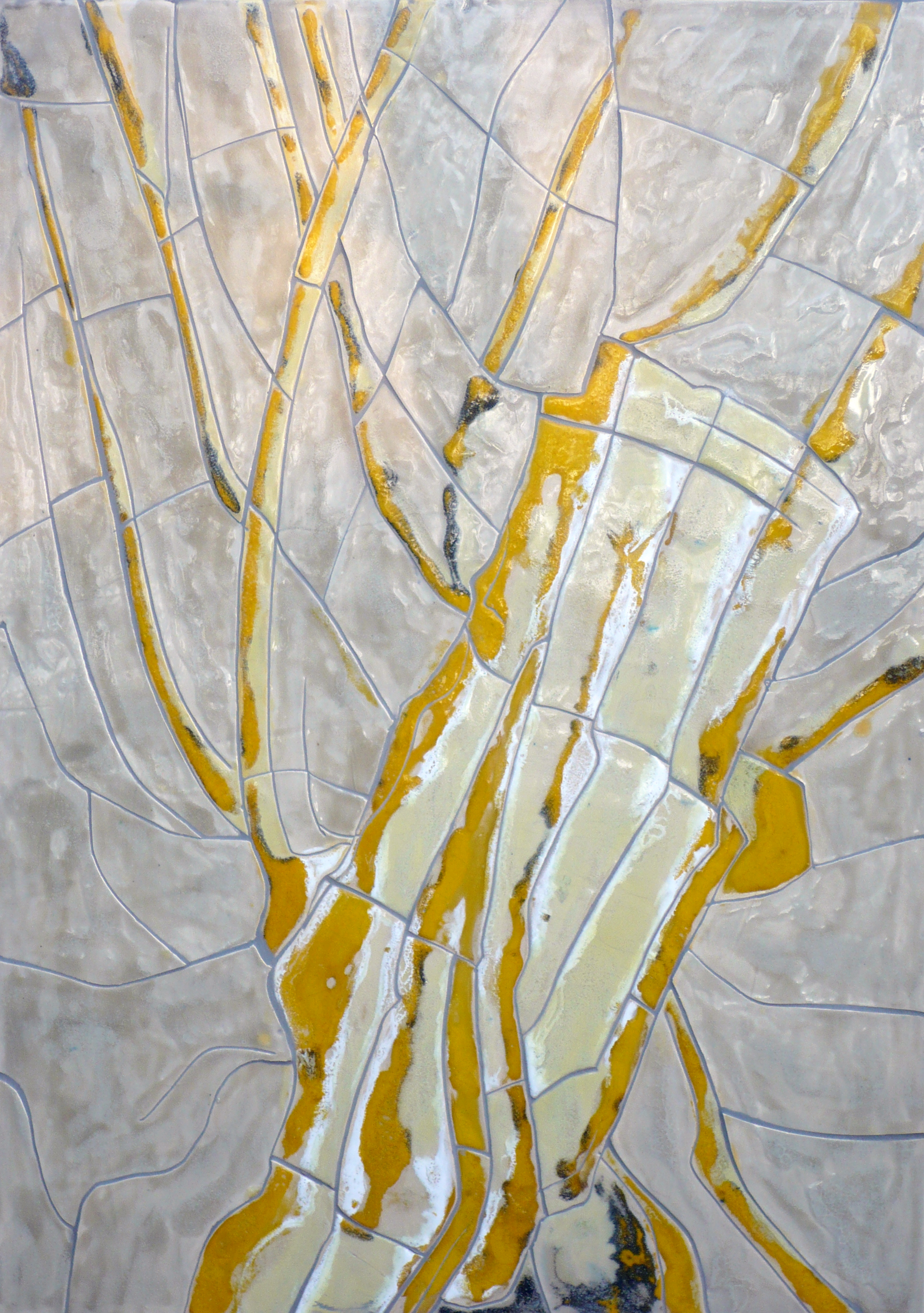 keramisch mozaïek, met glanzende transparante glazuren. eenvoudige zachte kleuren als een gladde tak zonder schors
