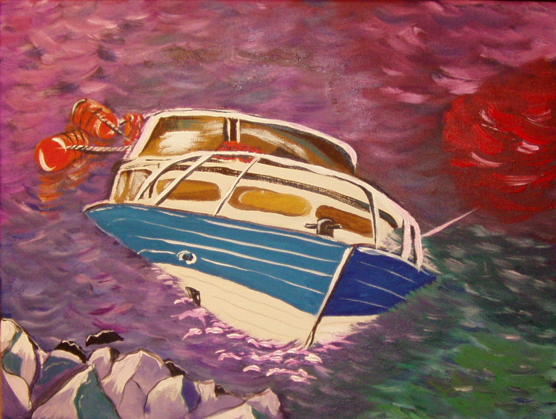 Gestrand bootje, half onder gelopen. Meer water nodig om door te gaan?