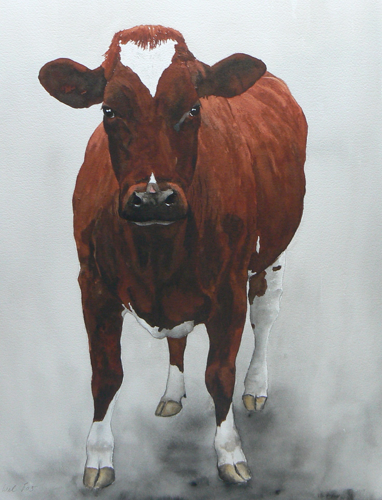 Of dit beest ook een stier is weet ik niet meer: hij kijkt wel alsof hij een stiertje is. Mooie lichtval op de bruinrode vacht.