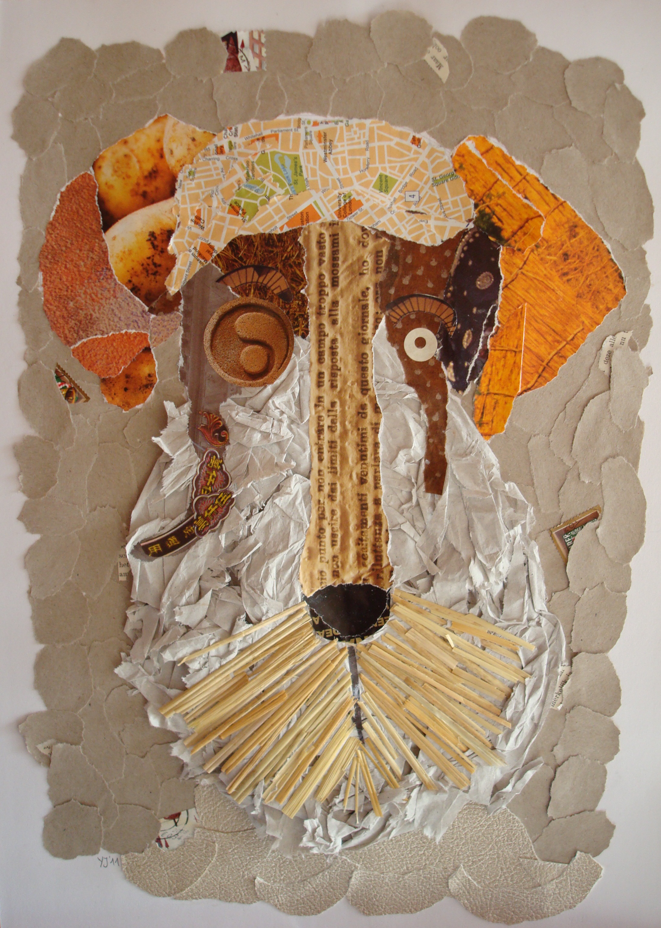 Straathond. collage, papier