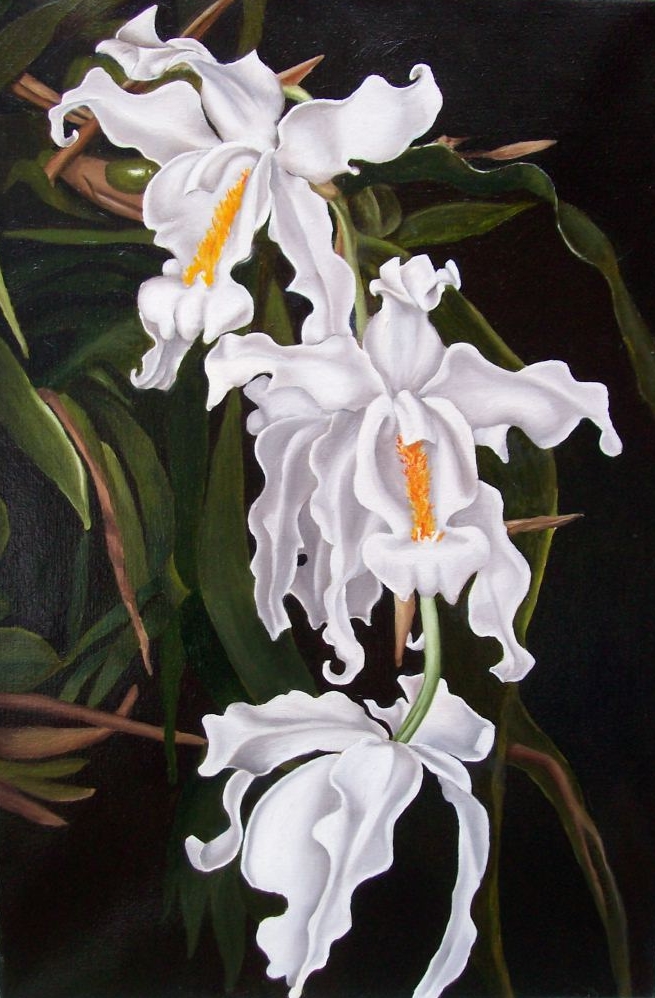 Wit Figuratief Groen Olieverf Oilpainting Bloem Green White Leaves Witte Orchidee Gebladerte Exotisch Realistic Orchid Donkergroen