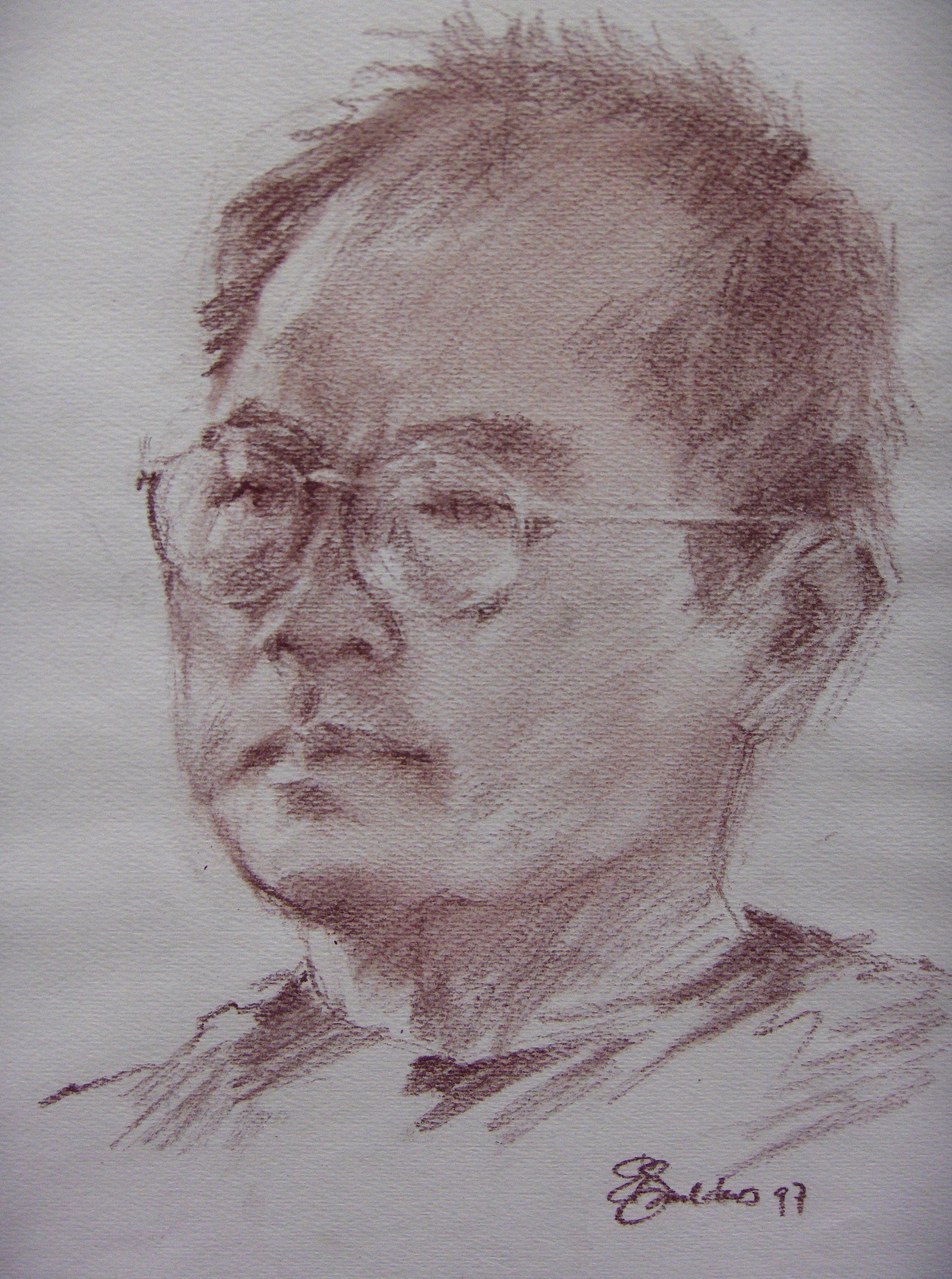 Evert Chin, portrettekening naar model, pastelpotlood, kleur sanguine