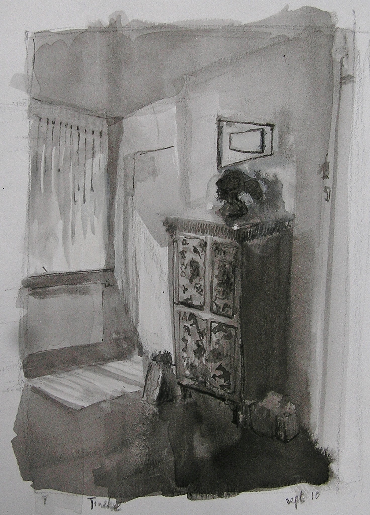 In mei 2009 ben ik afgestudeerd aan de Wackersacademie te Amsterdam, richting tekenen/schilderen. Het onderwerp van mijn eindexamenwerk was het interieur. Licht, uitgesproken vormen en kleurvlakken zijn de beeldelementen waarmee ik een intieme sfeer in de ruimte probeer te verwezenlijken. Soms speelt het licht de hoofdrol om pas in tweede instantie het geheim van de ruimte prijs te geven. Zo ontstaat een wereld waarin de aanwezigheid van het afwezige leven voelbaar is.