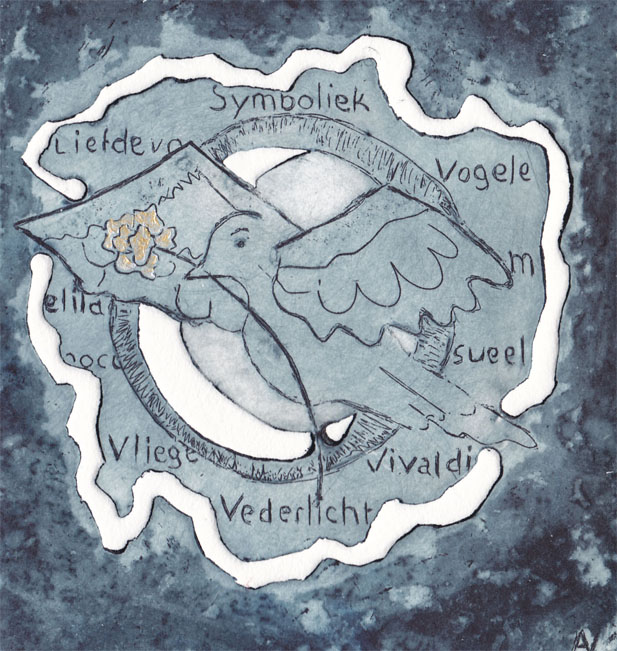 Eenvoud,symboliek en grafische elementen. Etsen, Pastel en Acryl met frisse en kleurrijke voorstellingen.