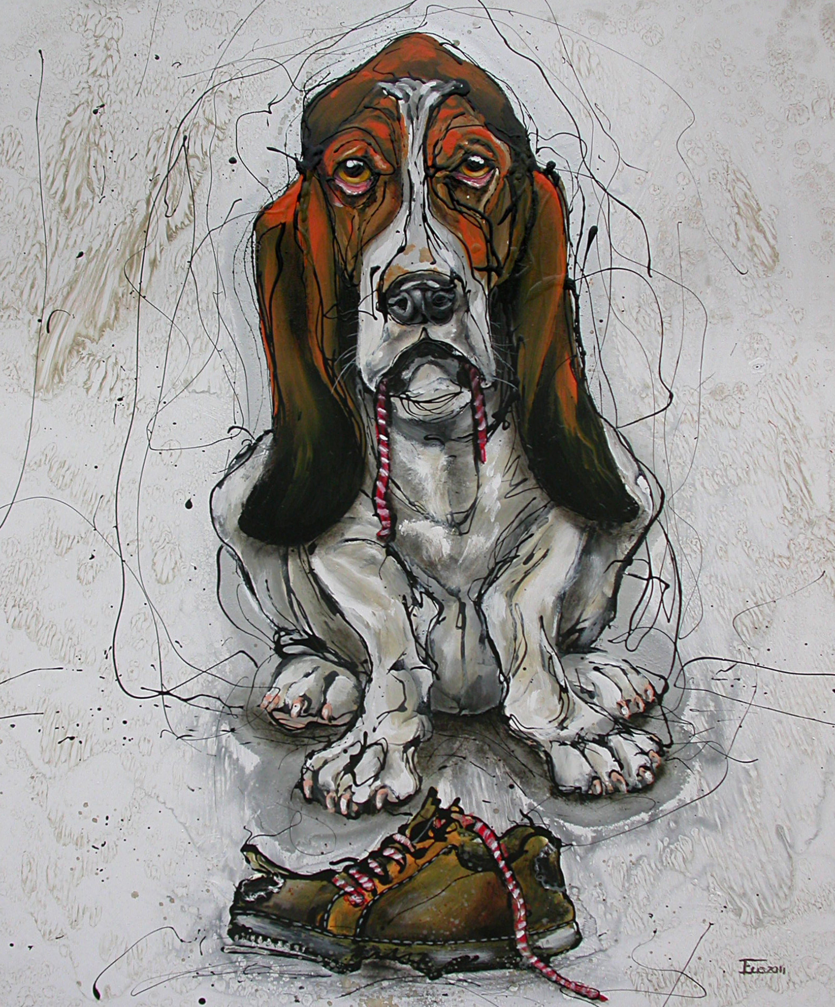 Wit Bruin Hond White Brown Schoen Dog Bad Basset Hound Shoe Erlinde Ufkes Stephanus Hondenkunst Dierenschilderijen Animalpaintings Stout Eus Dogart Hondenschilderijen Dogpaintings