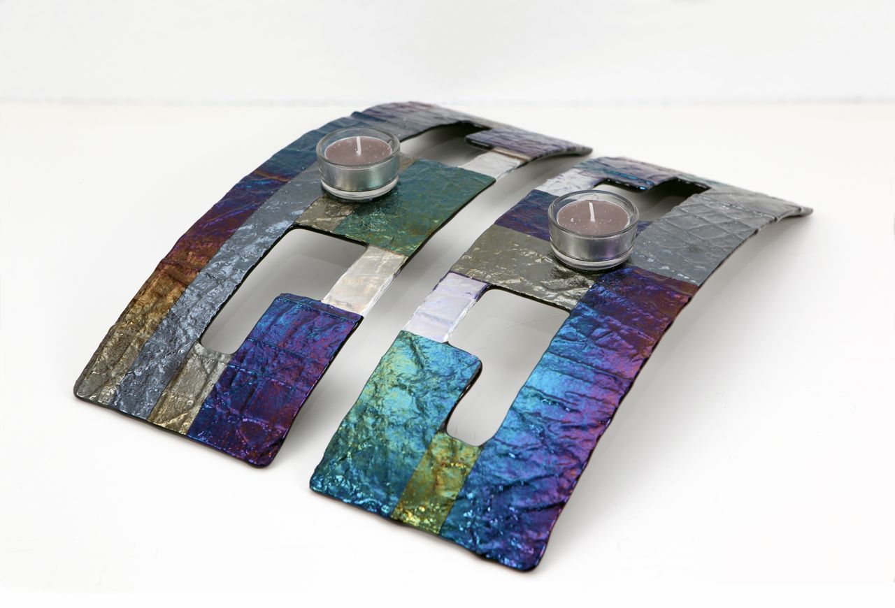2 kandelaars: Gefused en gevormd Bullseye glas. Prijs is per stuk