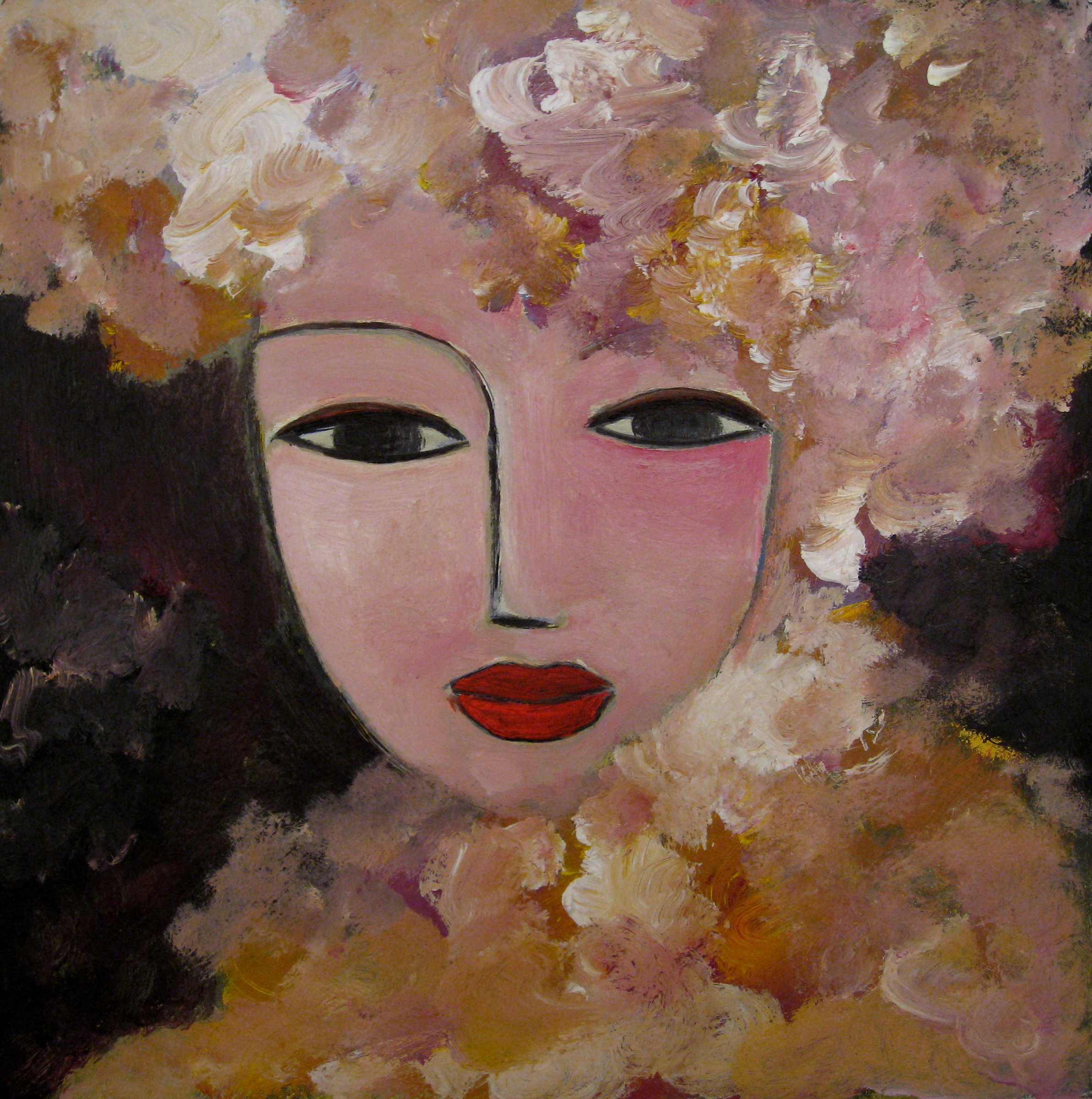 Schilderij Portret Roze Pop Bloesem