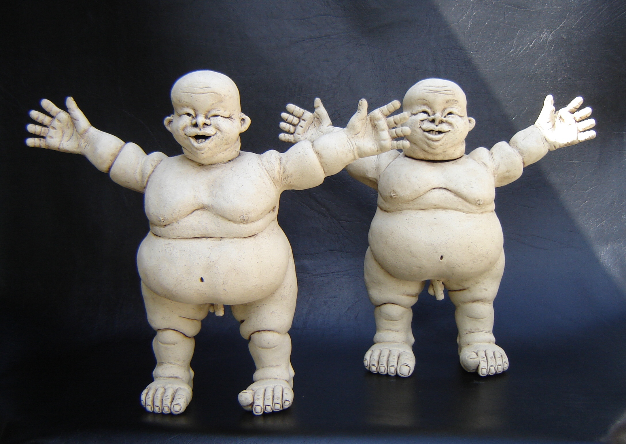 koppel beelden happy, keramiek in traditionele gasoven gebakken