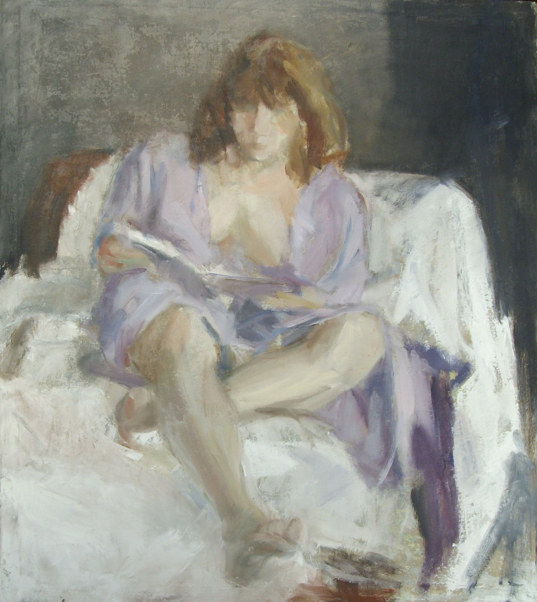 Wit Paars Vrouw Model Olie Figuur Schilderkunst Compositie Lila Lezen Mens
