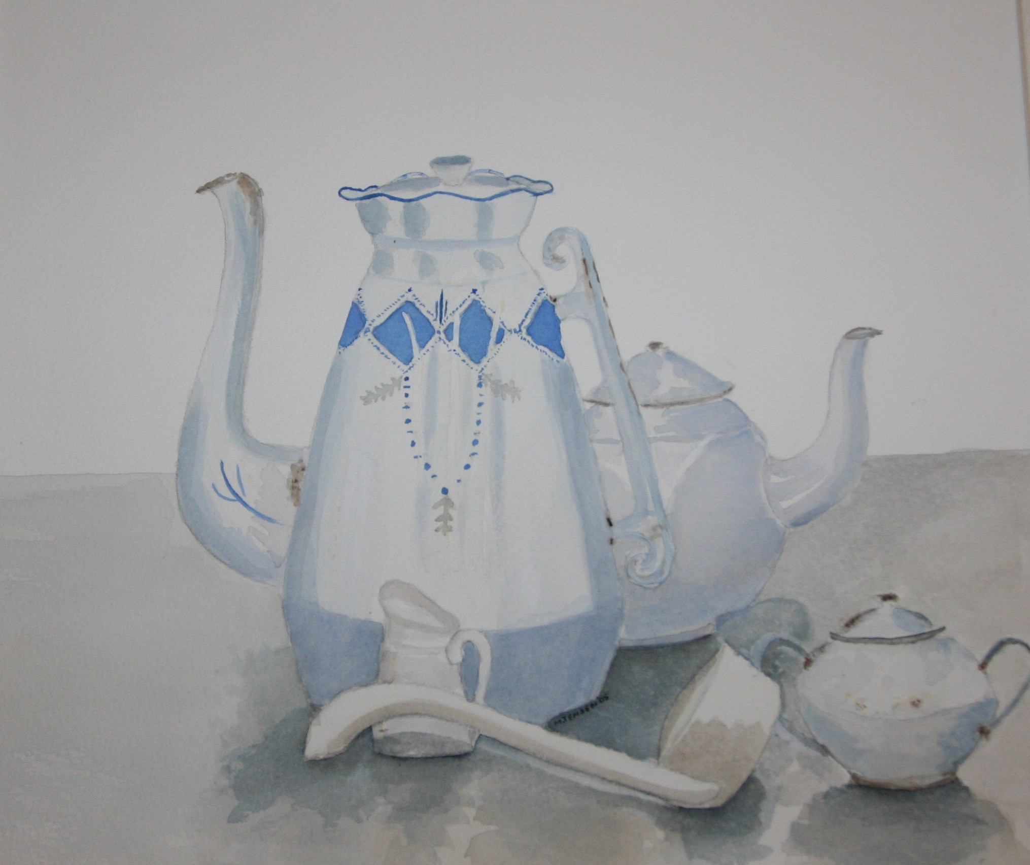 op de les was dit een stilleven om te oefenen en te kijken naar voorwerpen in dezelfde kleur. alle voorwerpen zijn wit maar van een ander materiaal en kleur. Een hele uitdaging om te maken