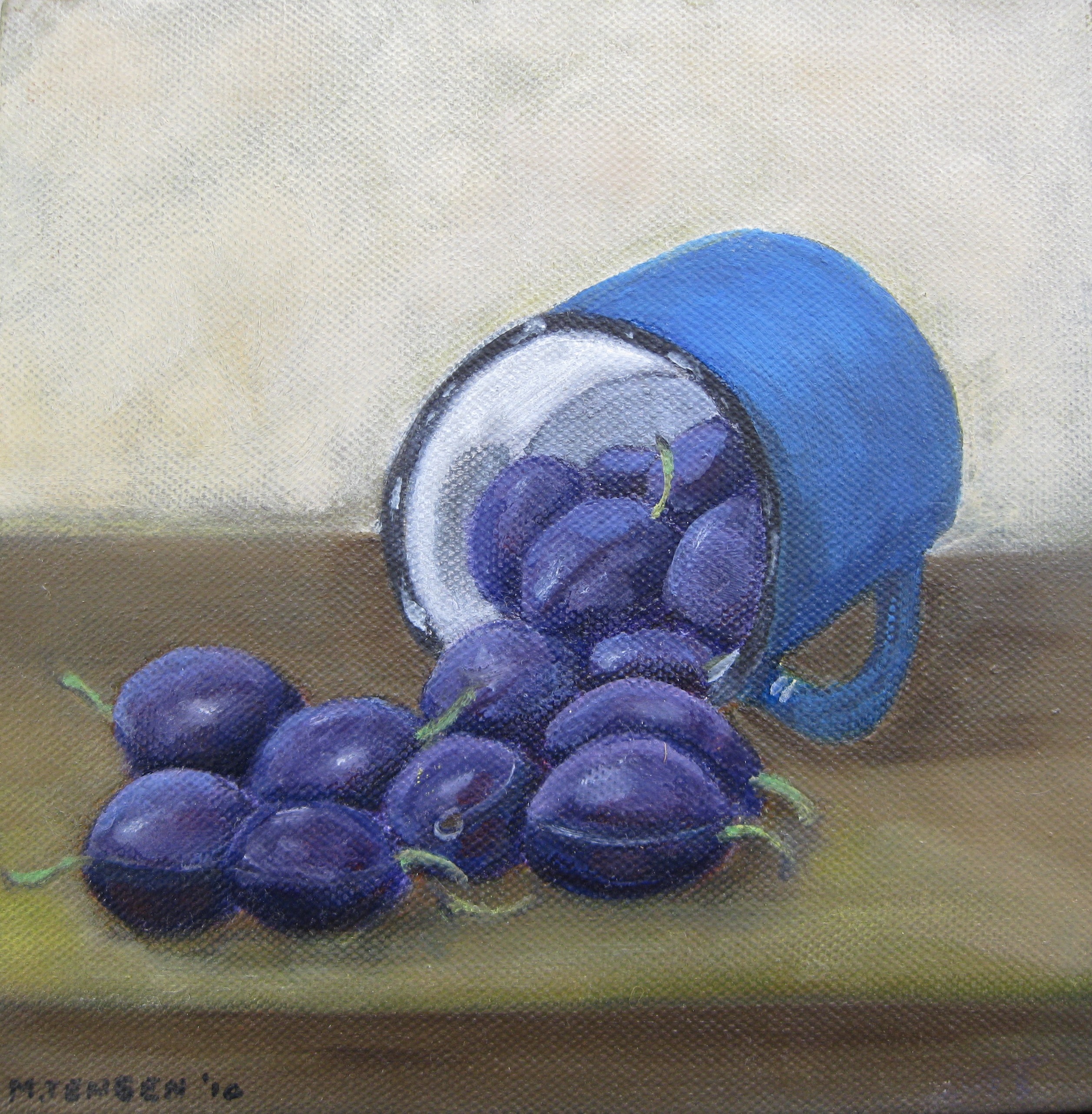 emaille beker was moeilijk om te doen de pruimen gingen wel