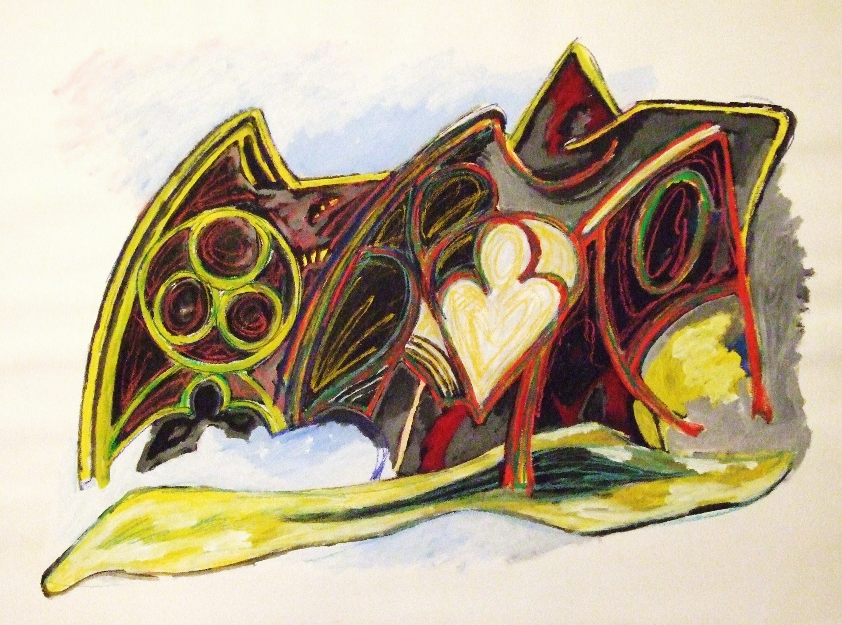 Dom Utrecht: improvisatie op tracering no6 uitgevoerd met acrijlverf en pastelkrijt.
