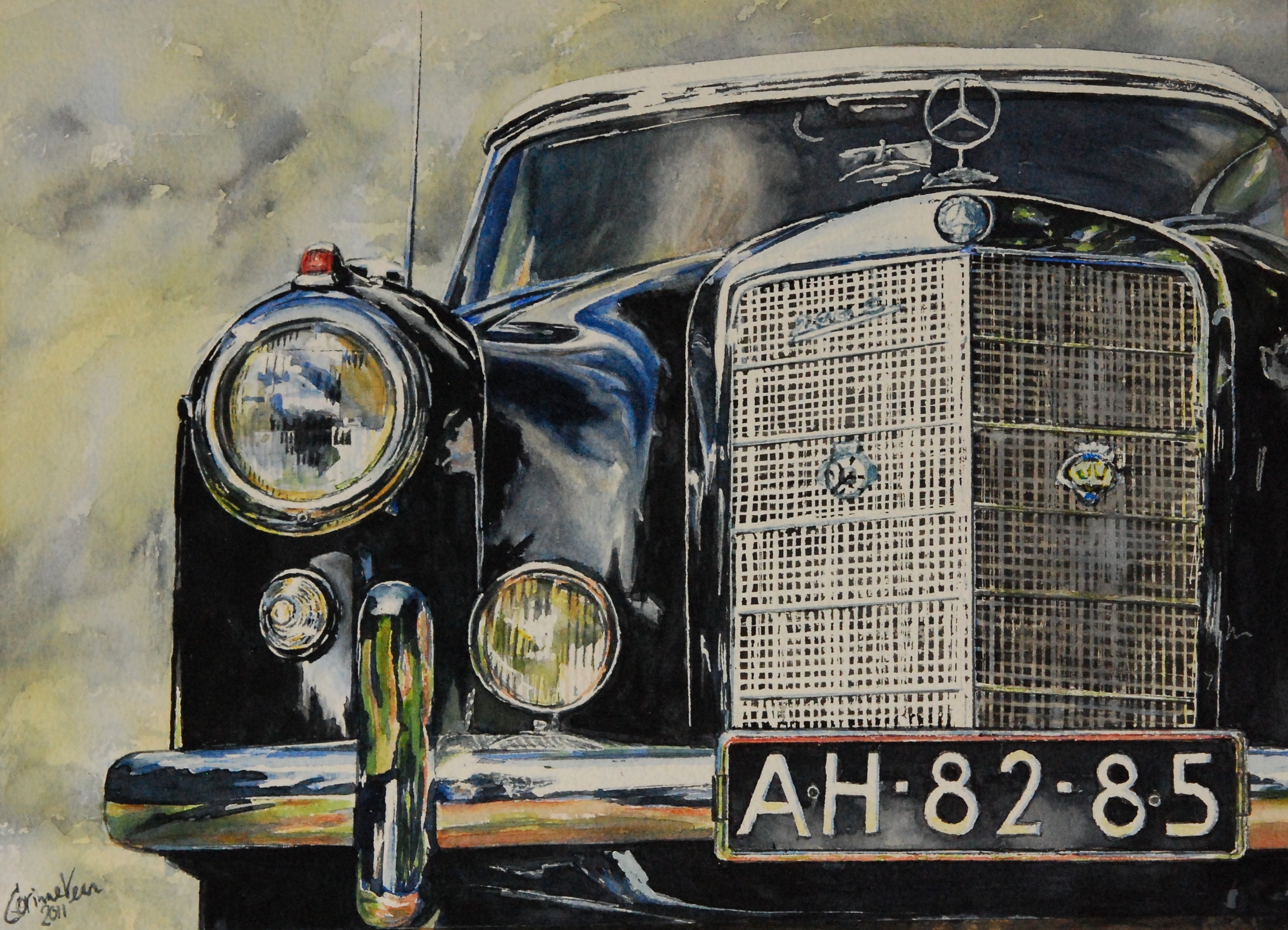 Schilderij van een auto. Portretopdracht van een oldtimer.