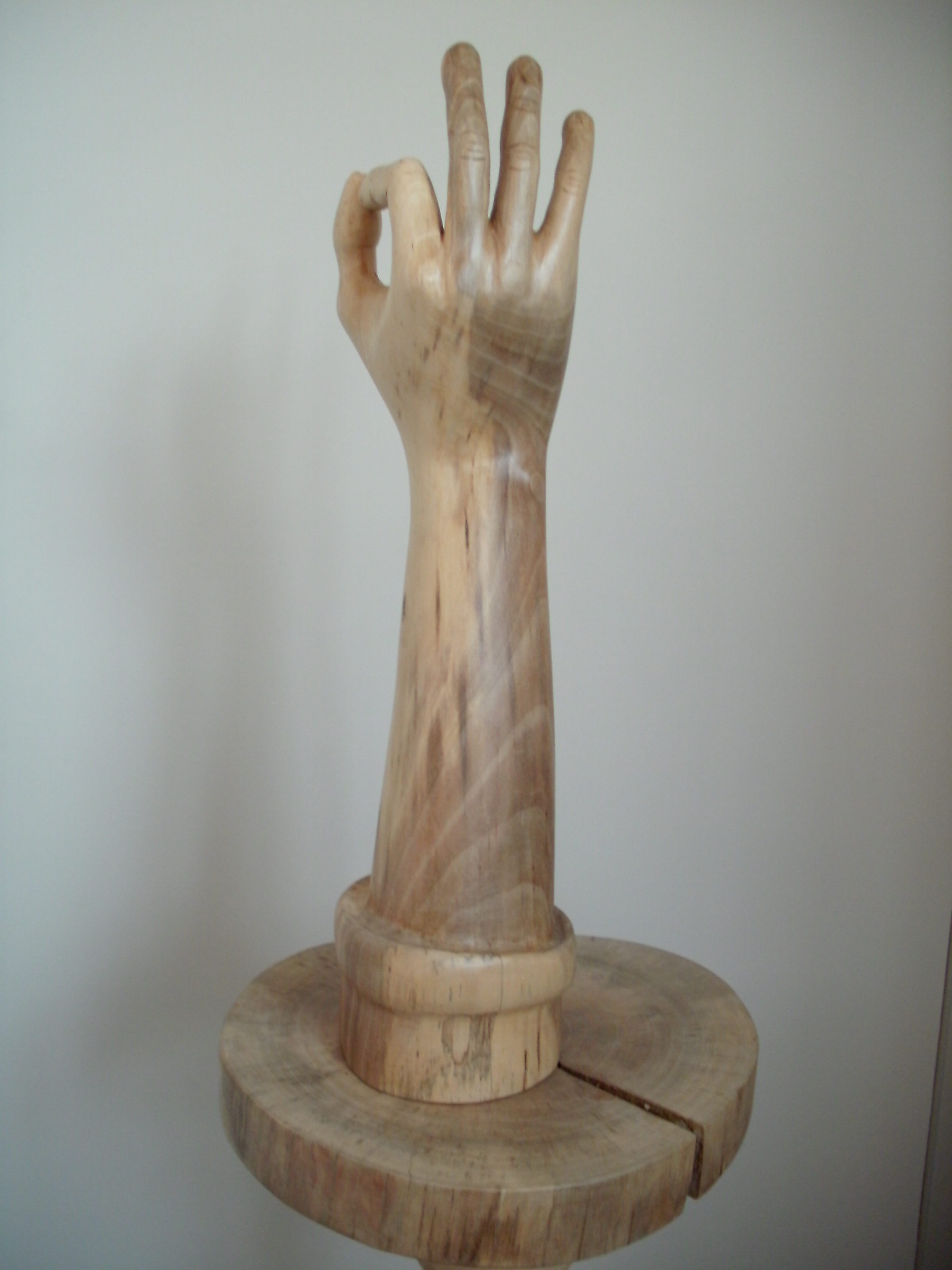 Uit notenhout vervaardigde hand,behandeld met danisch oil. In opdracht gemaakt,de uitdrukking spreekt voor zich!