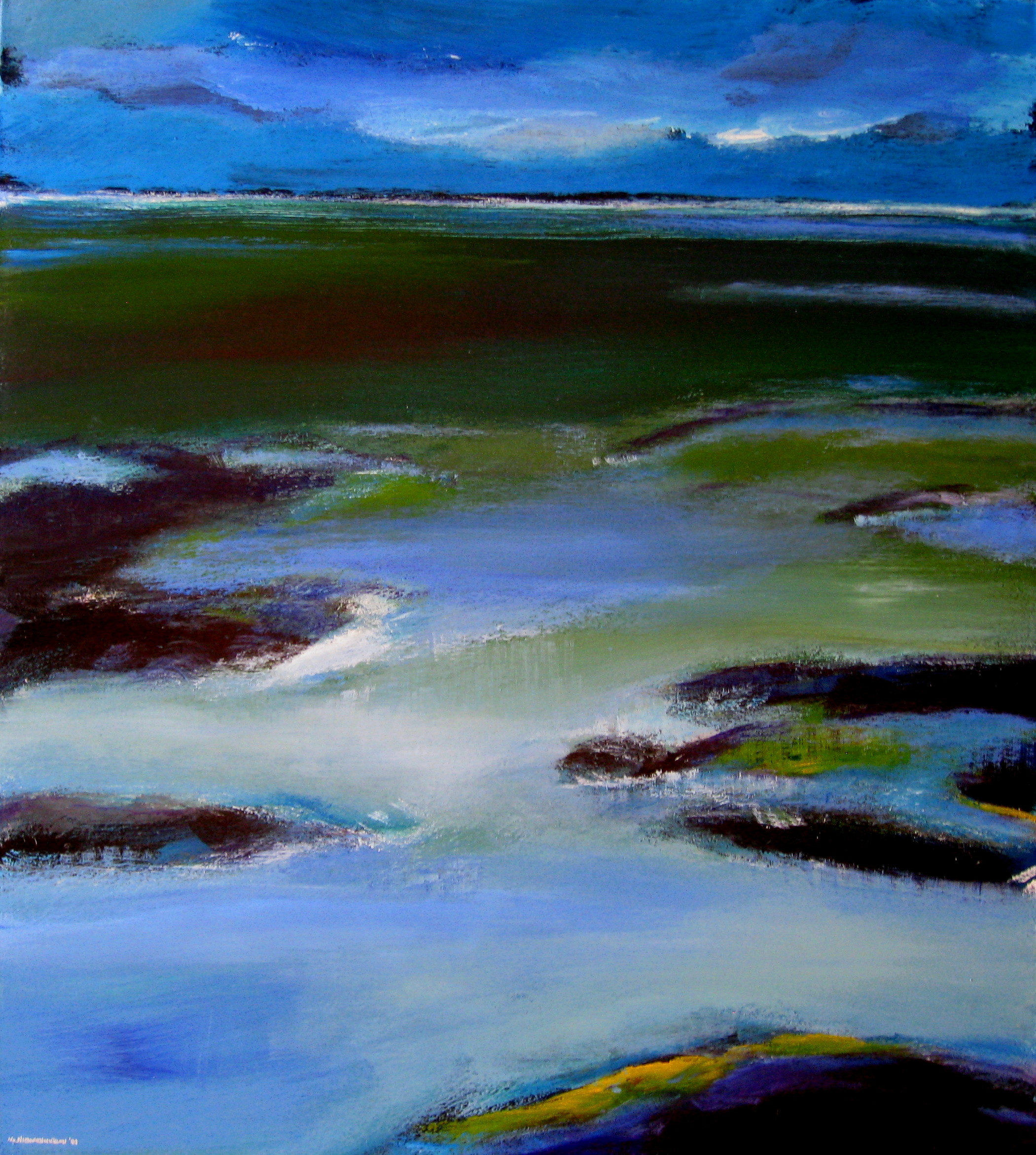 Schilderij Geel Landschap Blauw Groen Kust Zeeland
