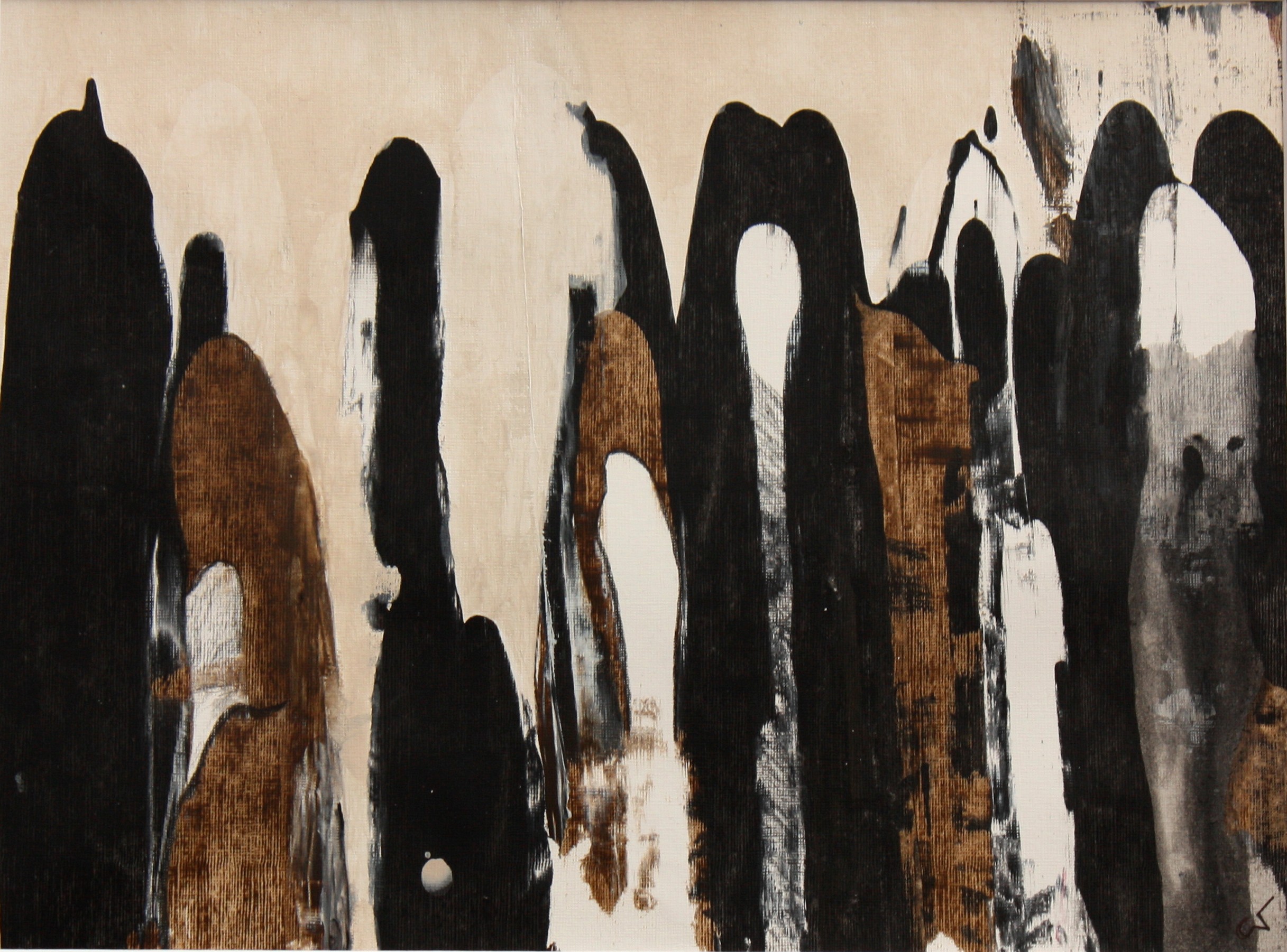 People gaat over mensen - hoe ervaar je de mensen om je heen, wat doen de mensen om je heen? Zijn ze je goed gezind, in zichzelf gekeerd maar met een goed hart? Welke People zijn vijandig, onvriendelijk, zelfs gevaarlijk? Je kunt je soms zó vergissen.......... Mooie lichte metalen lijst 40 x 50 cm, werk 30 x 40 cm.