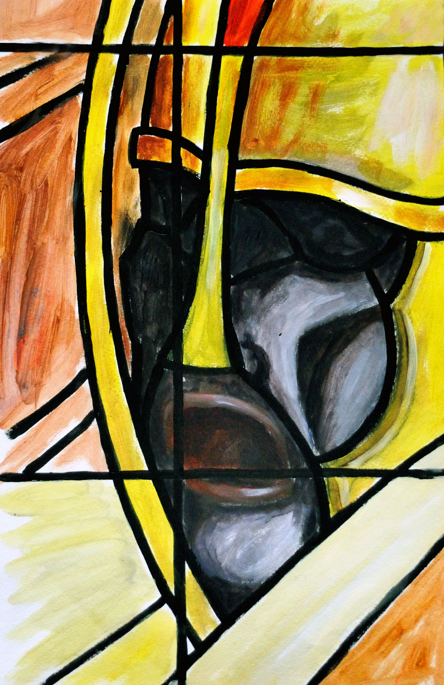 een studie van een van de soldaten in mijn glasraam Apocayps