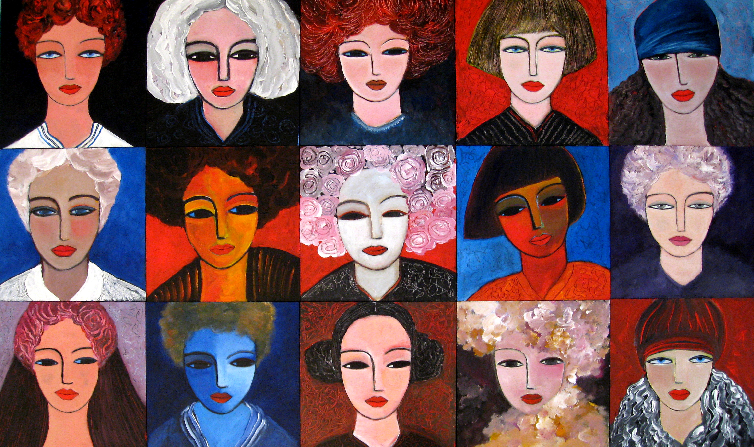 Schilderij Vrouwen Groep Kleurrijk Painting Women Portretten 15