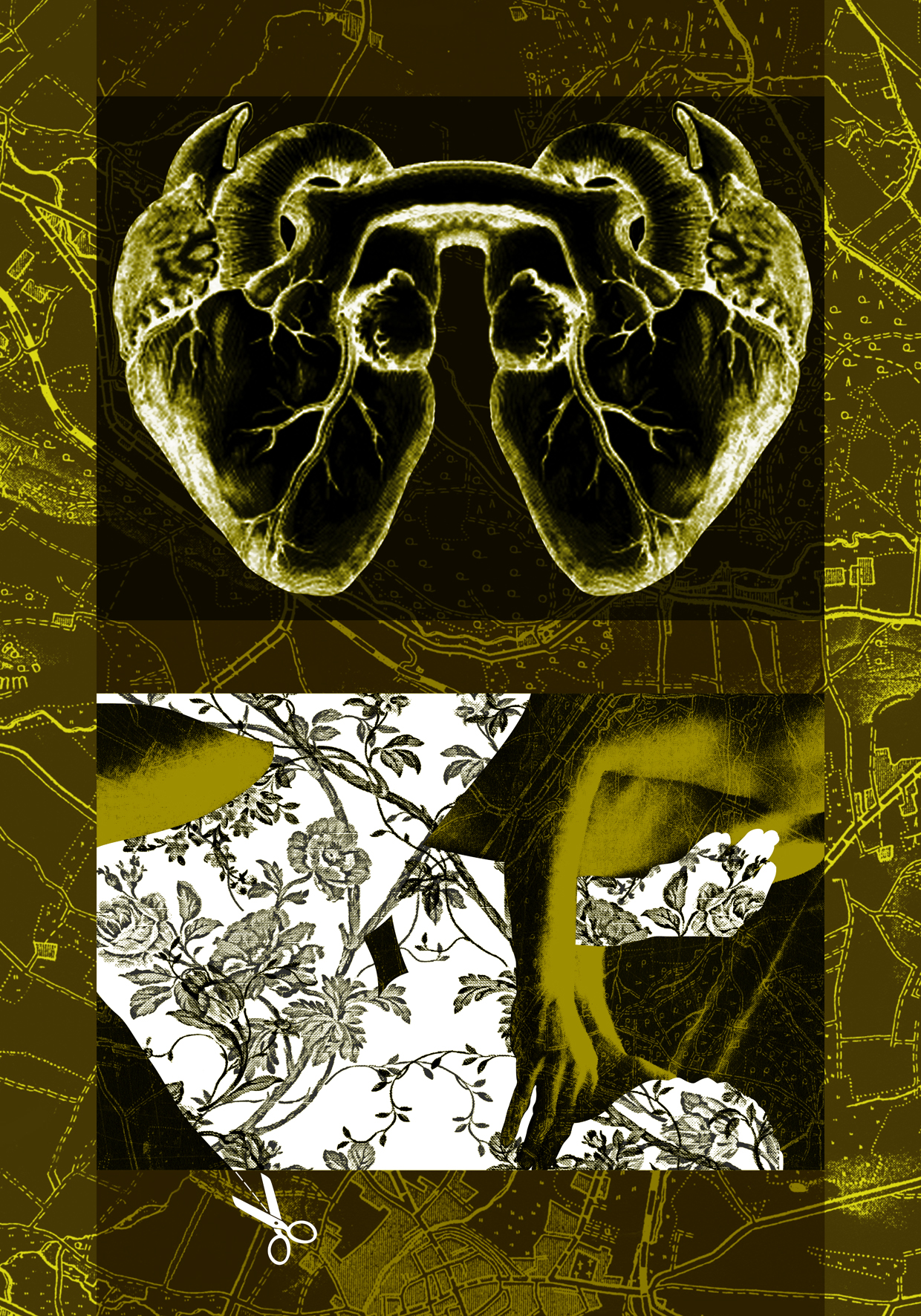 Een digitale collage op barrietpapier over liefde