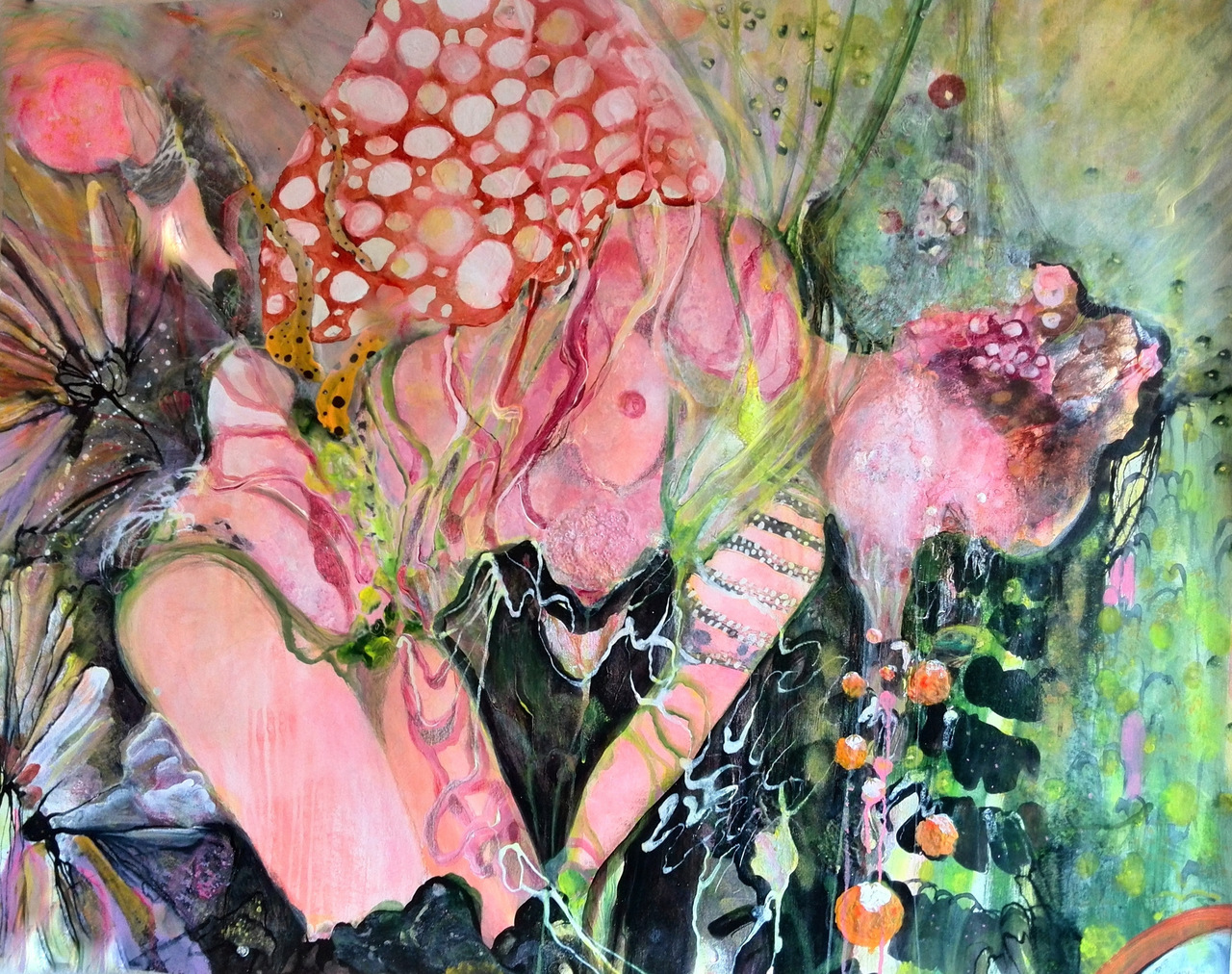 Het is mijn manier van kijken naar de dingen....De bewegingen die ik maak in de verf.... De beelden zijn sensueel en met een erotische associatie. Dit is niet voor iedereen waarneembaar. Mijn inspiratie vind ik in het binnenste van bloemen ( insideofaflower) , in schelpen en vruchten... Door in te zoomen op de kwaststreken van eerdere werken ontstaan er nieuwe beelden. Losse vormen die een eigen leven gaan leiden. Ze lijken heel vleselijk en lichamelijk. Ik houd zoveel van verf dat ik verzamelingen aanleg van losse kwaststreken en vlekken op een transparante ondergrond. Zo ben ik steeds op zoek naar vernieuwing in mijn werk. Naast tekenen en schilderen maak ik ook collages en kleine objecten. ZIE ook instagram : inekedimphiclaessens