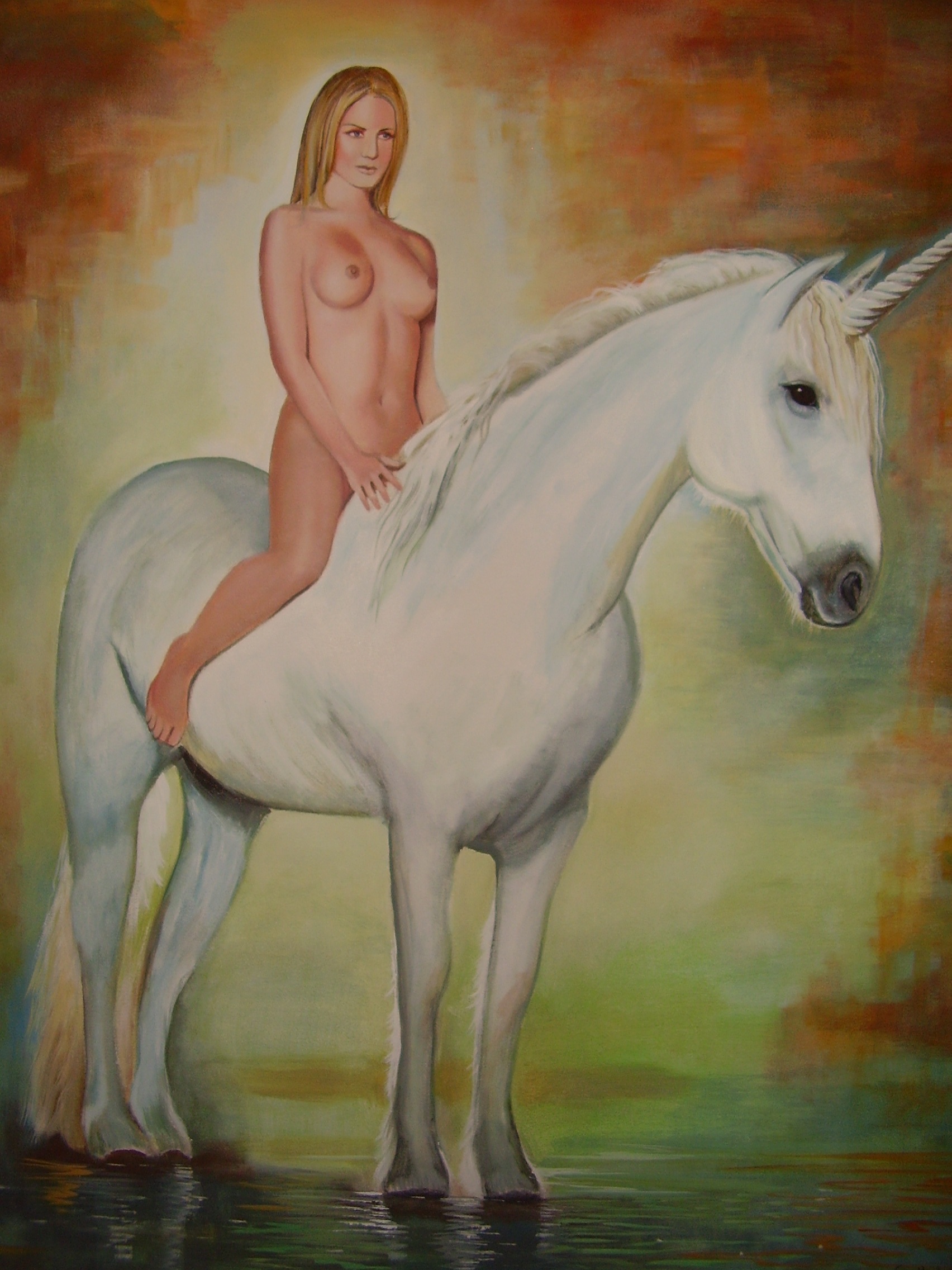 Eenhoorn bereden door maagd..