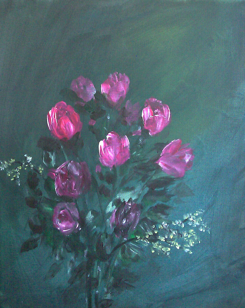 Een bosje bloemen , nat in nat met acryl, fantasiecompositie.