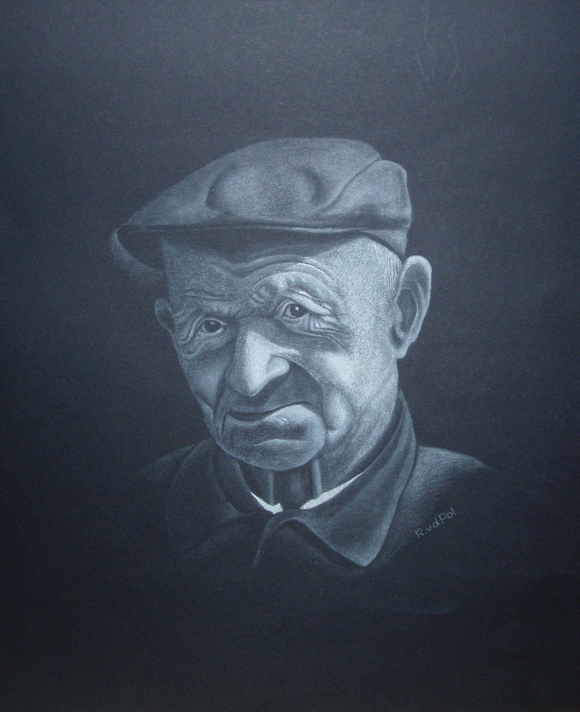Wit potlood op zwart papier boertje