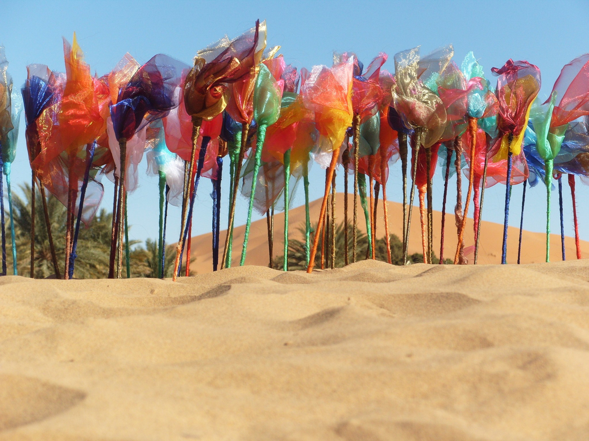 Kunstproject Bloemen Textiel Zand Sahara Marokko Merzouga Reizen