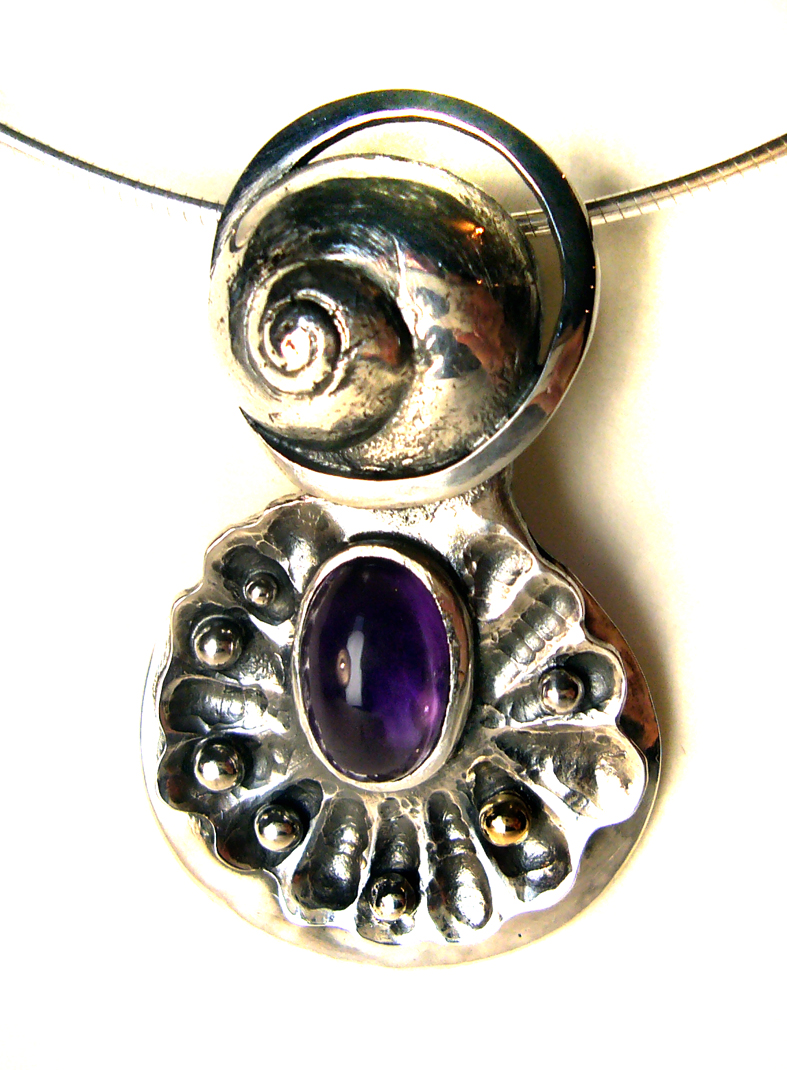 Silver Gold Zilver Goud Amethyst Spiritueel Seventies Pendant Hanger Edelsmid