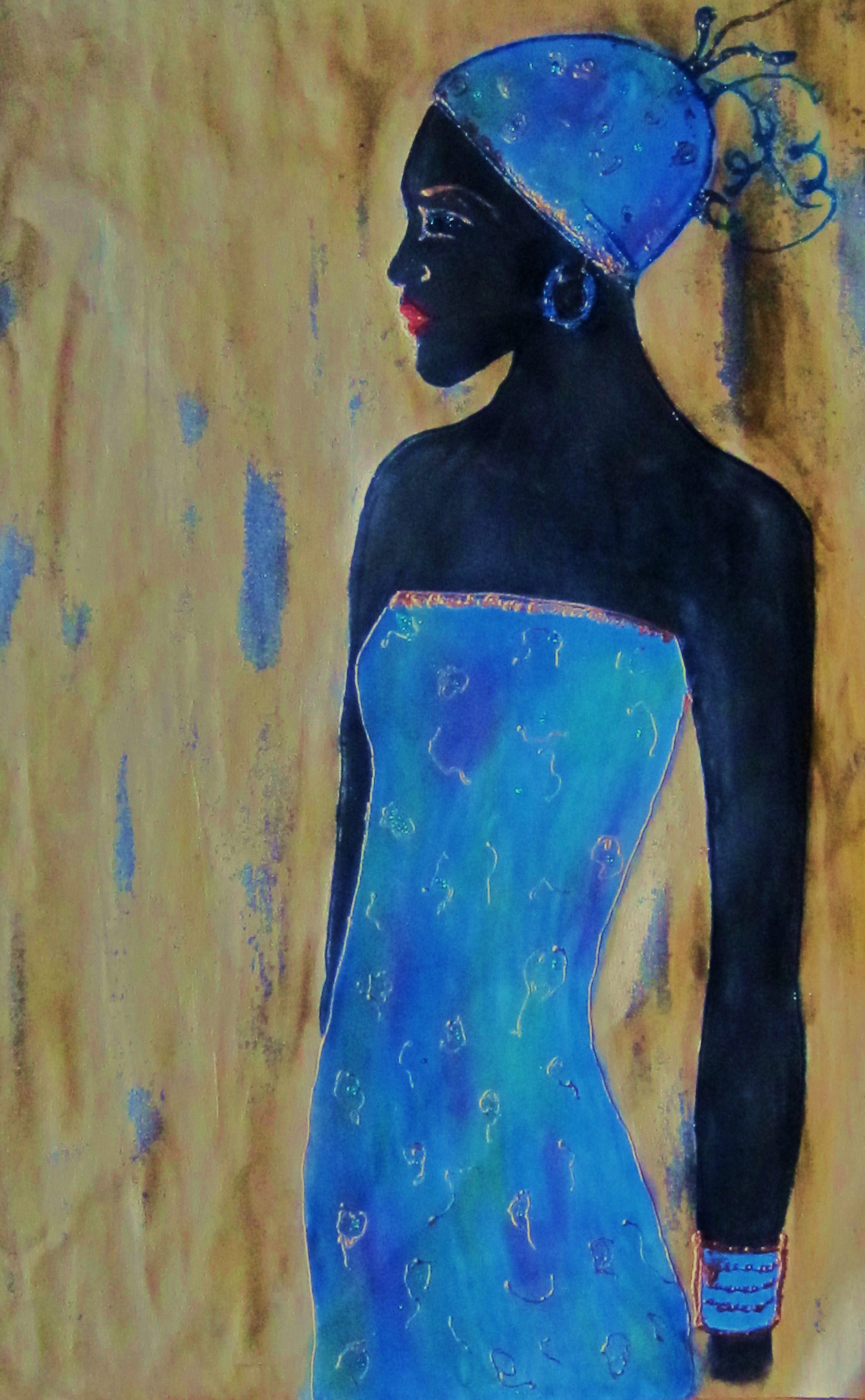 Afrikaanse dame met 3 D effect, glasverf en reliëf verf