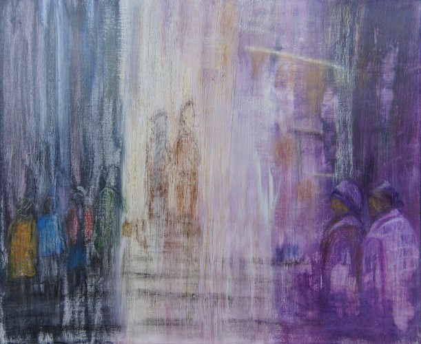 Grijs Blauw Paars Mens Wazig Personen Mistig Missen Waskrijt
