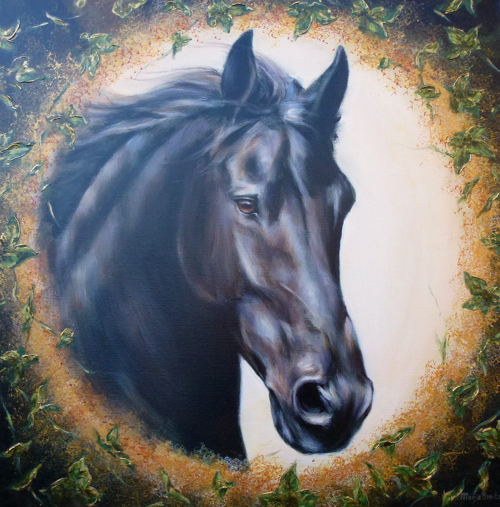 Zwart Acryl Goud Dieren Paarden Paard Fries Paardenhoofd