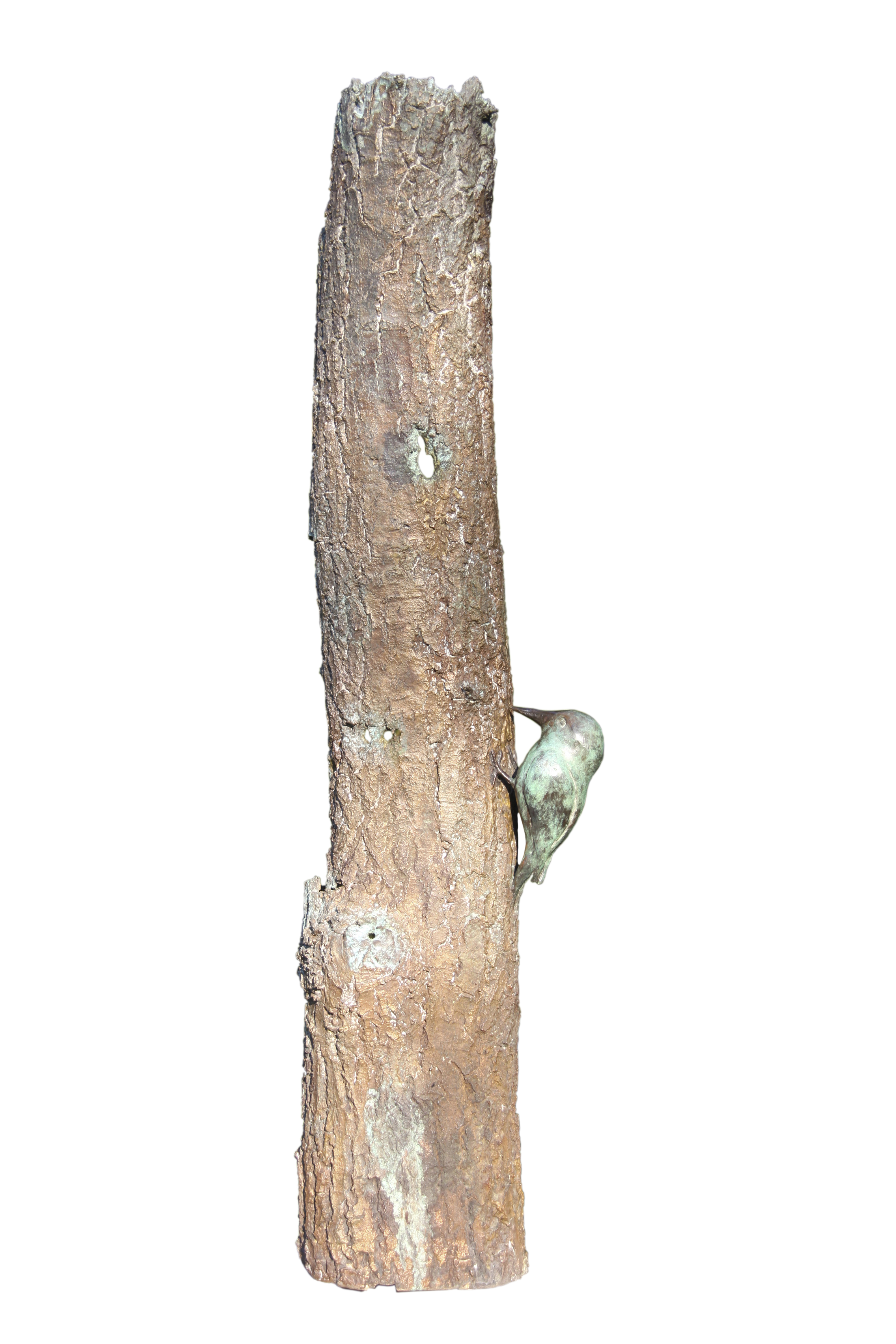 Specht op boomschors,brons,unicum.