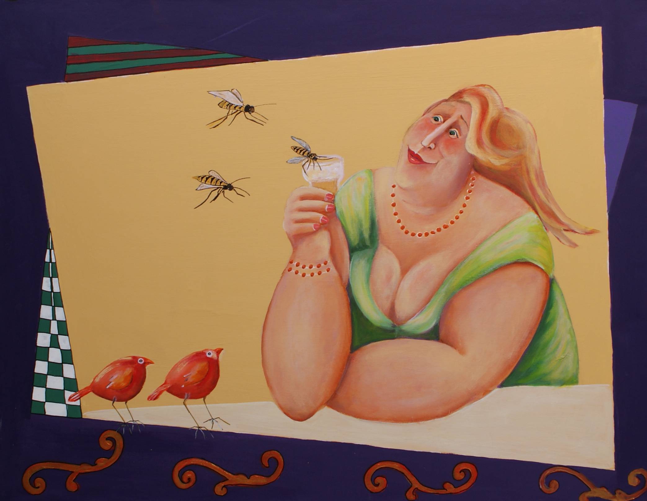 ruim 30 jaar als keramiste gewerkt en de laatste 10 jaar het schilderen van vooral dikke dames als levensgenietsters