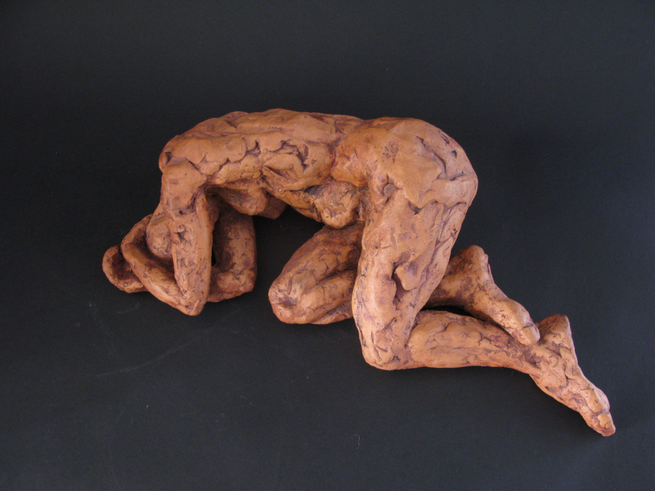 Vrouw Naakt Klei Realistisch Liggende Keramiek Rood/bruin Geboetseerd Ineengestrengeld