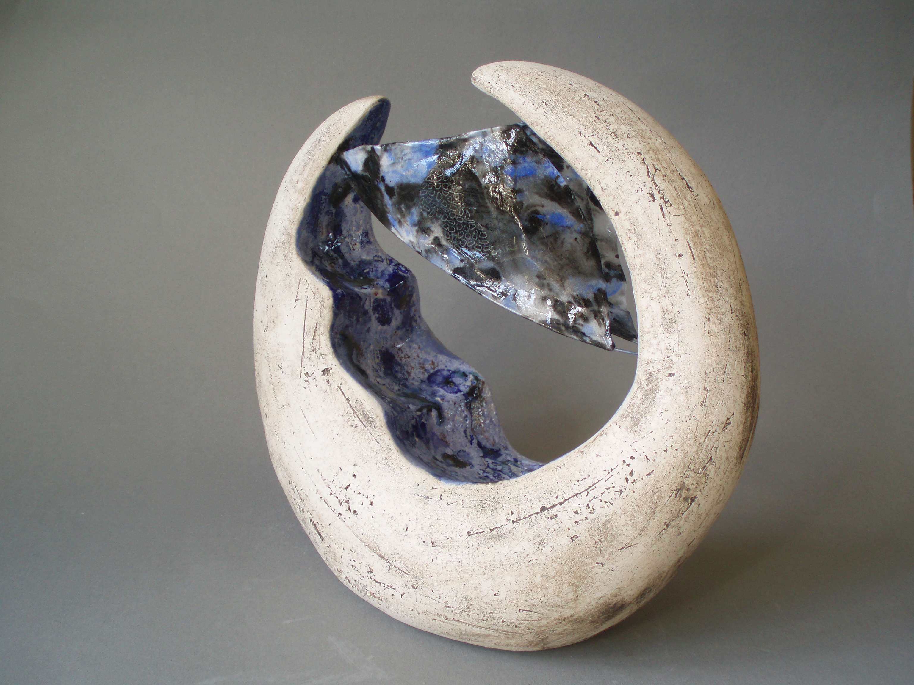 Blauw. Keramiek met rijstpapier.