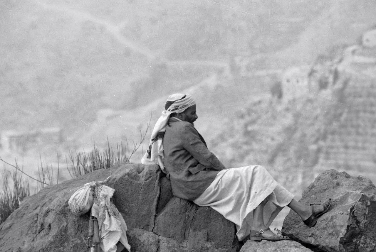 Rustende herder in Shaharah gebergte