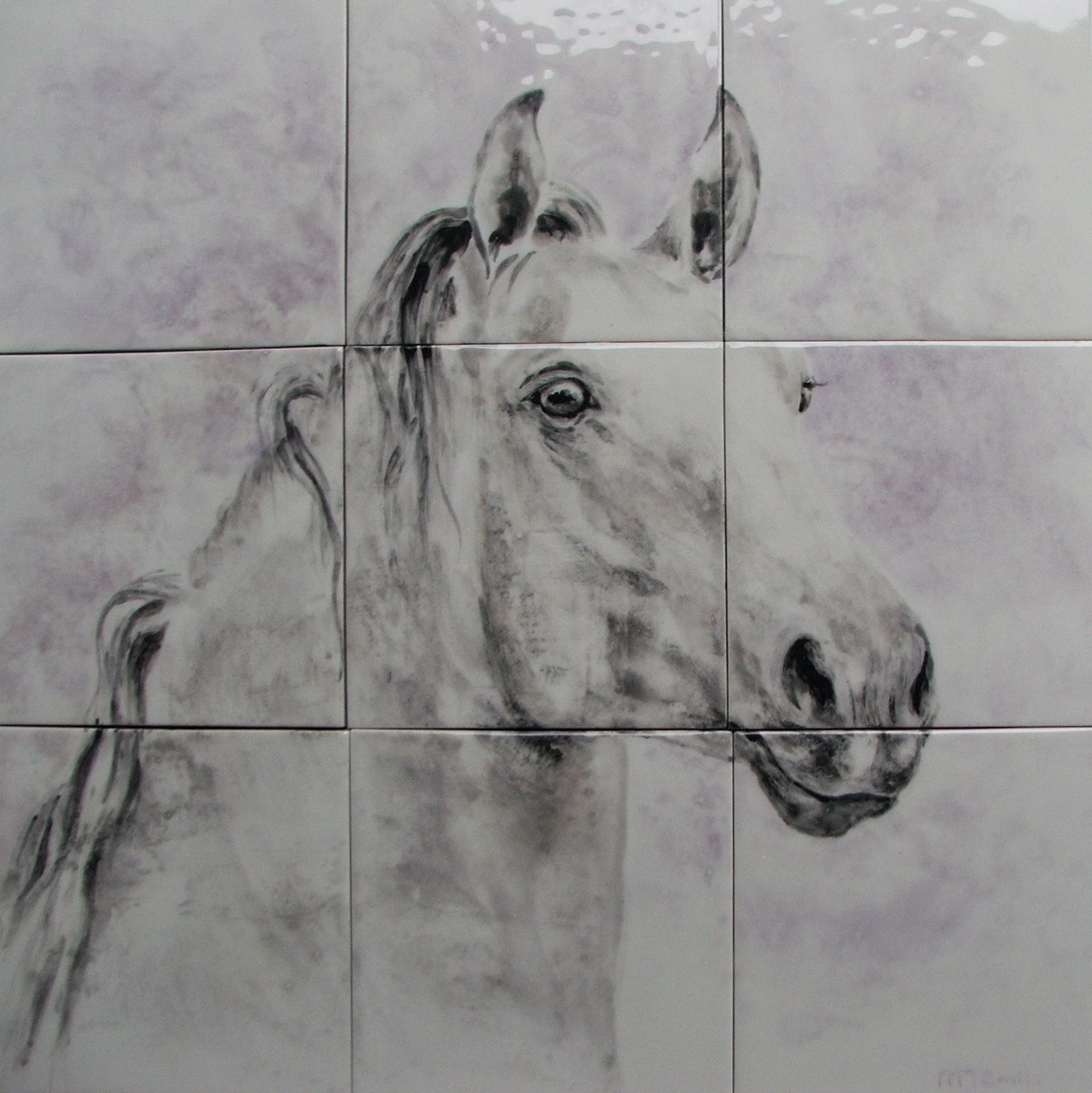 Tegeltableau van een hoofd van een andalusier op 9 tegels.