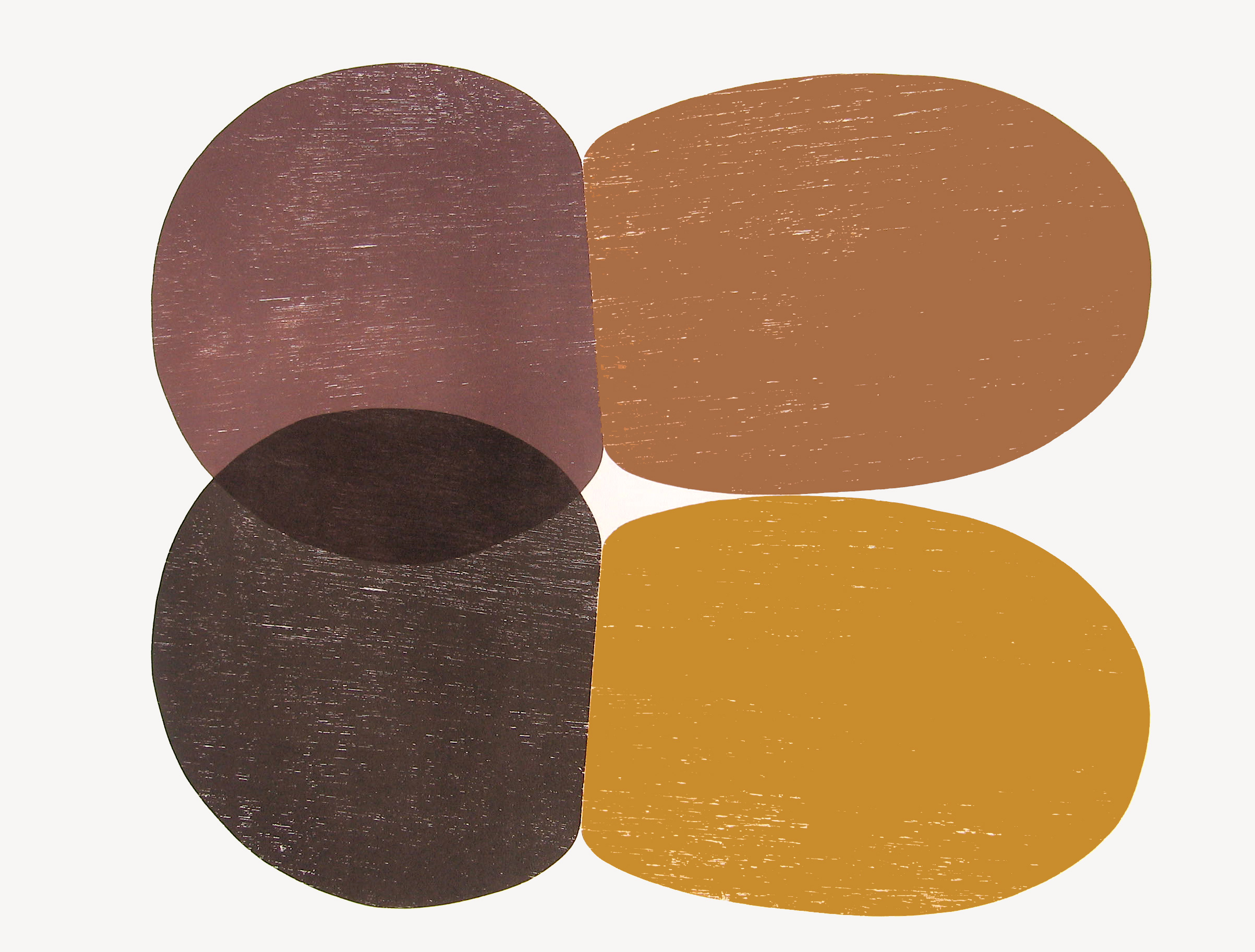 Ronde vormen in 4 aardkleuren gedrukt op rijstpapier. Oplage 3.