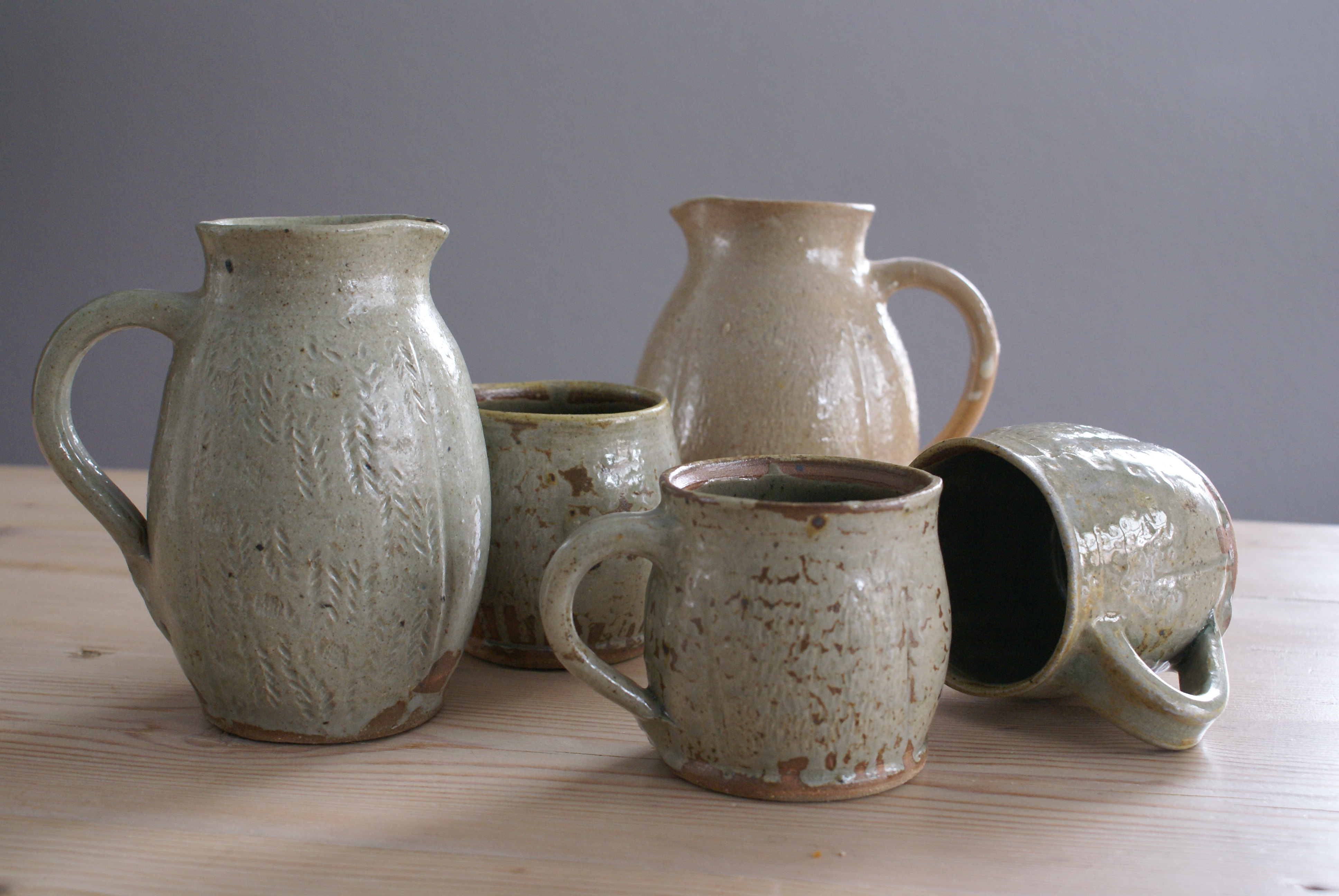 Franse gres klei, asglazuur, celadon glazuur, gestookt in een houtoven