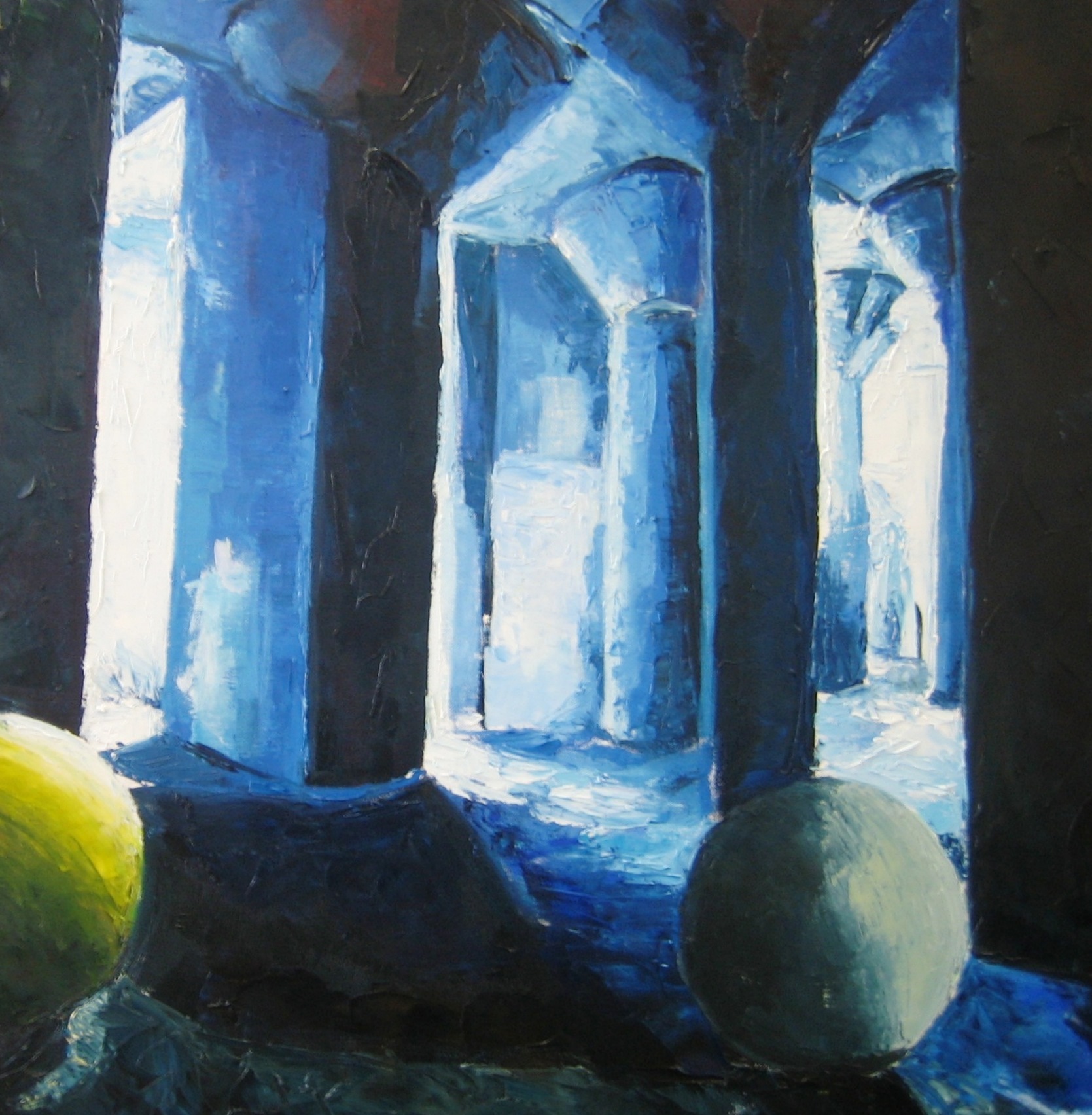 Schilderij Blauw Licht Olieverf Doorkijk Axel Fabriek