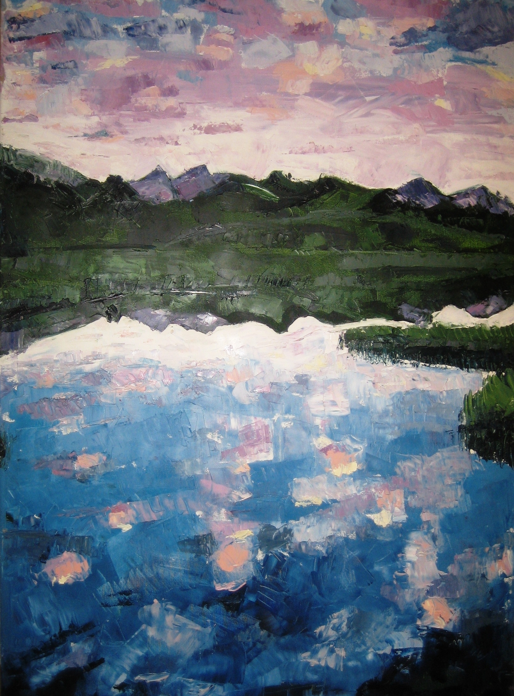 Water Wolken Zee Weerspiegeling Weerkaatsing Groen Natuur Schilderij Olieverf