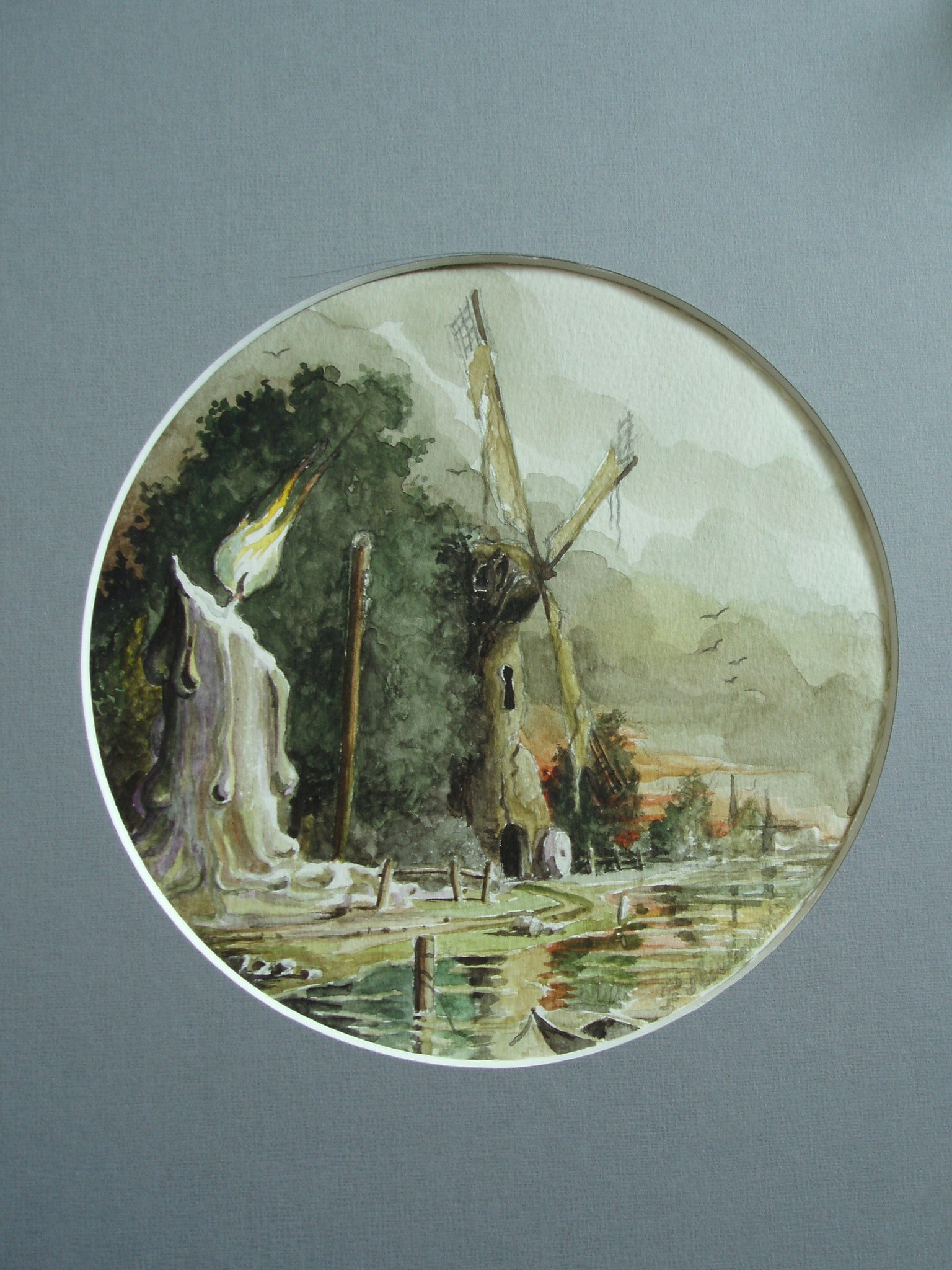 Landschap Romantiek Papier Aquarel Realisme Fantasie Zomer Molen Kaars