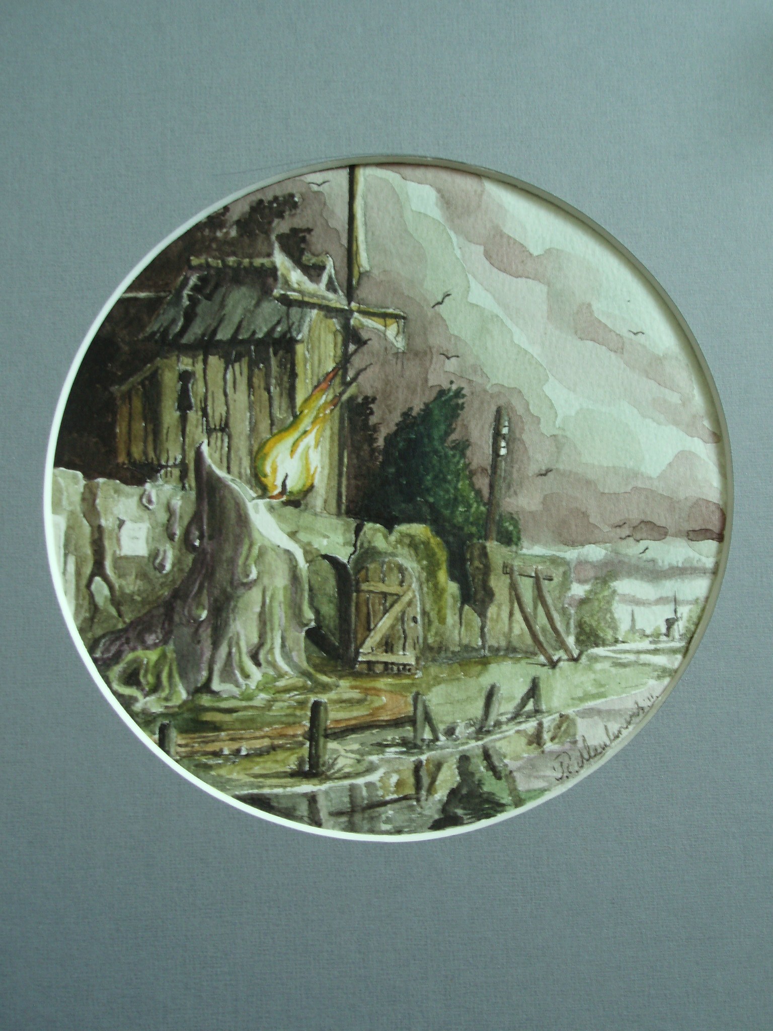 Landschap Romantiek Papier Aquarel Realisme Fantasie Zomer Molen Kaars