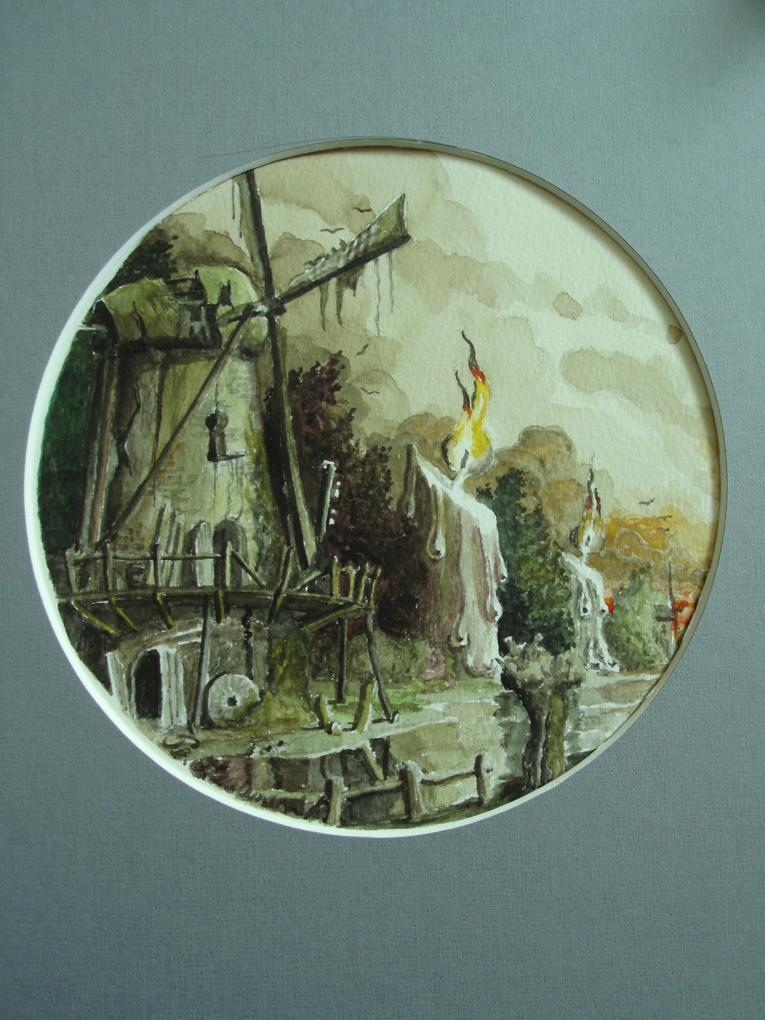 Landschap Romantiek Papier Aquarel Realisme Fantasie Zomer Molen Kaars