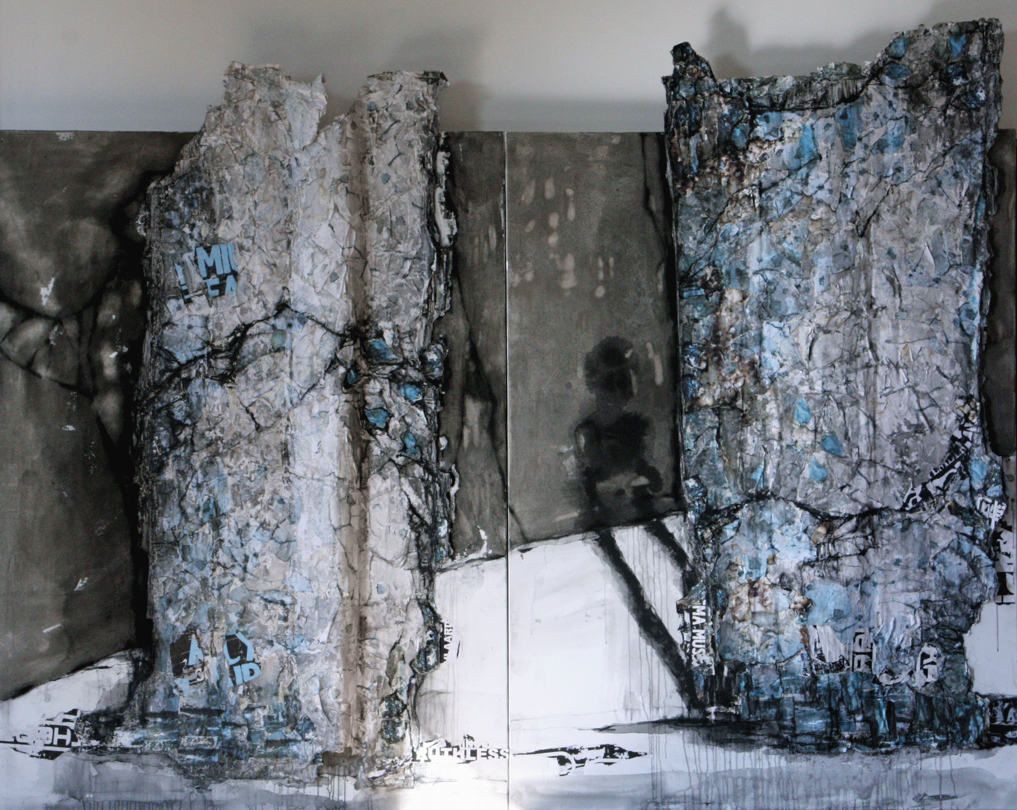 Papier/Zand/Acryl/Krijt op 2 doeken