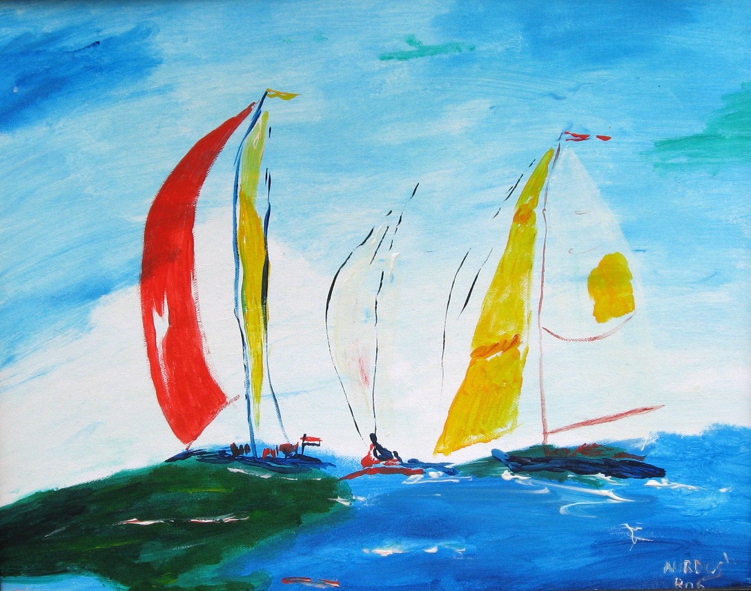 Ik schilder met gevoel alles wat in mijn hoofd op komt. Ik vertaal de werkelijkheid naar mijn eigen fantasie .