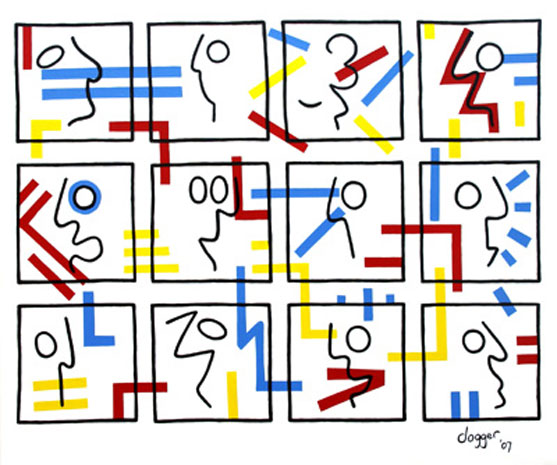 Dogger Modern Abstract Art Kunst Dannydogger Schilderen Schilderij Expo Expositie Primaire Kleuren Rood Geel Blauw Canvas