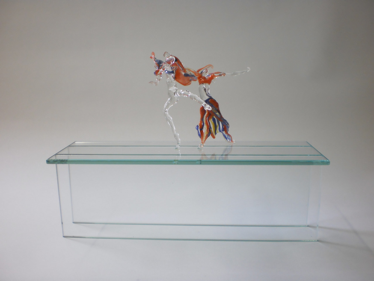 Vrolijk gekleurd danspaar op glazen voetstuk