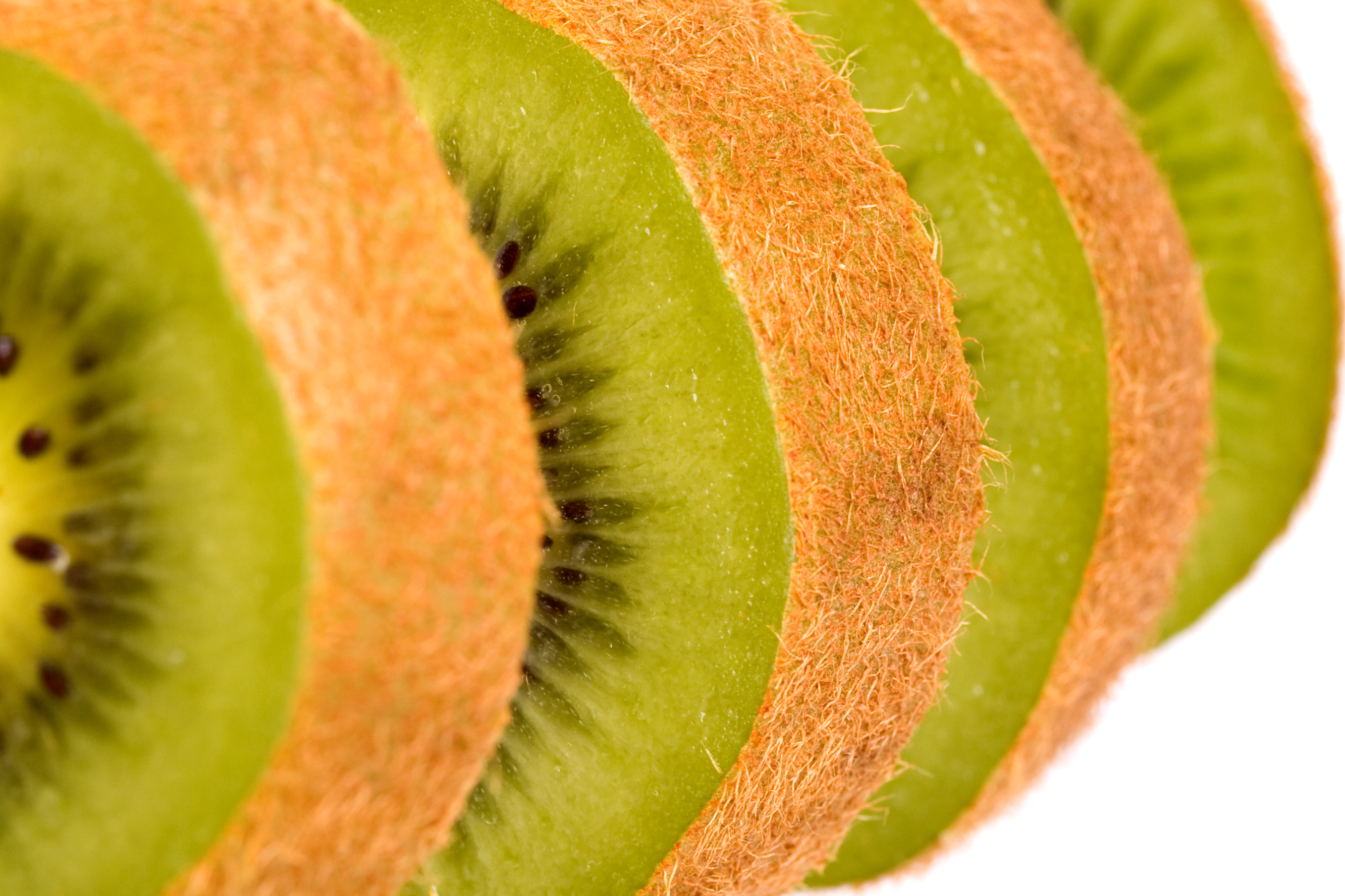 een detail opname van een aantal kiwi schijven achter elkaar.